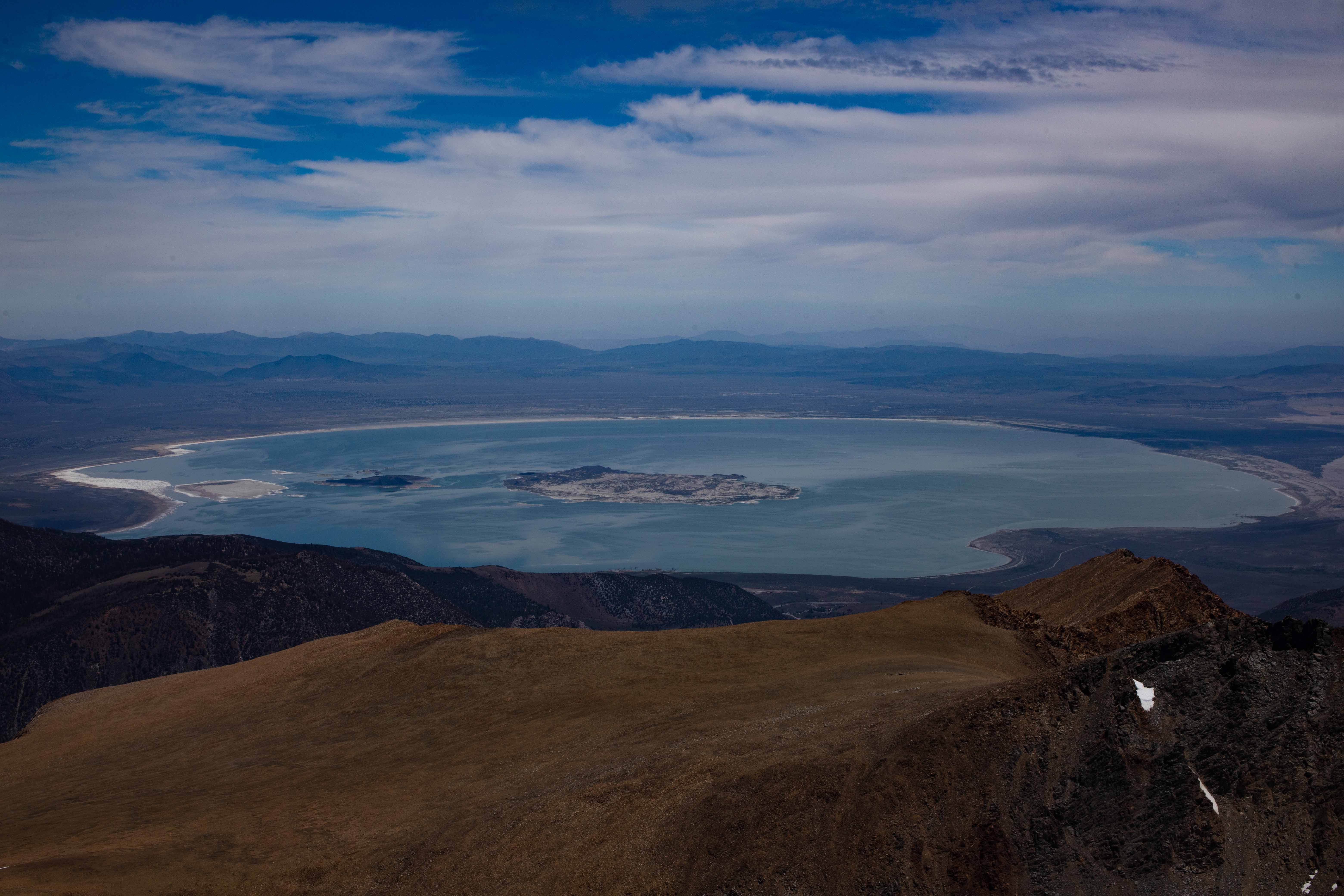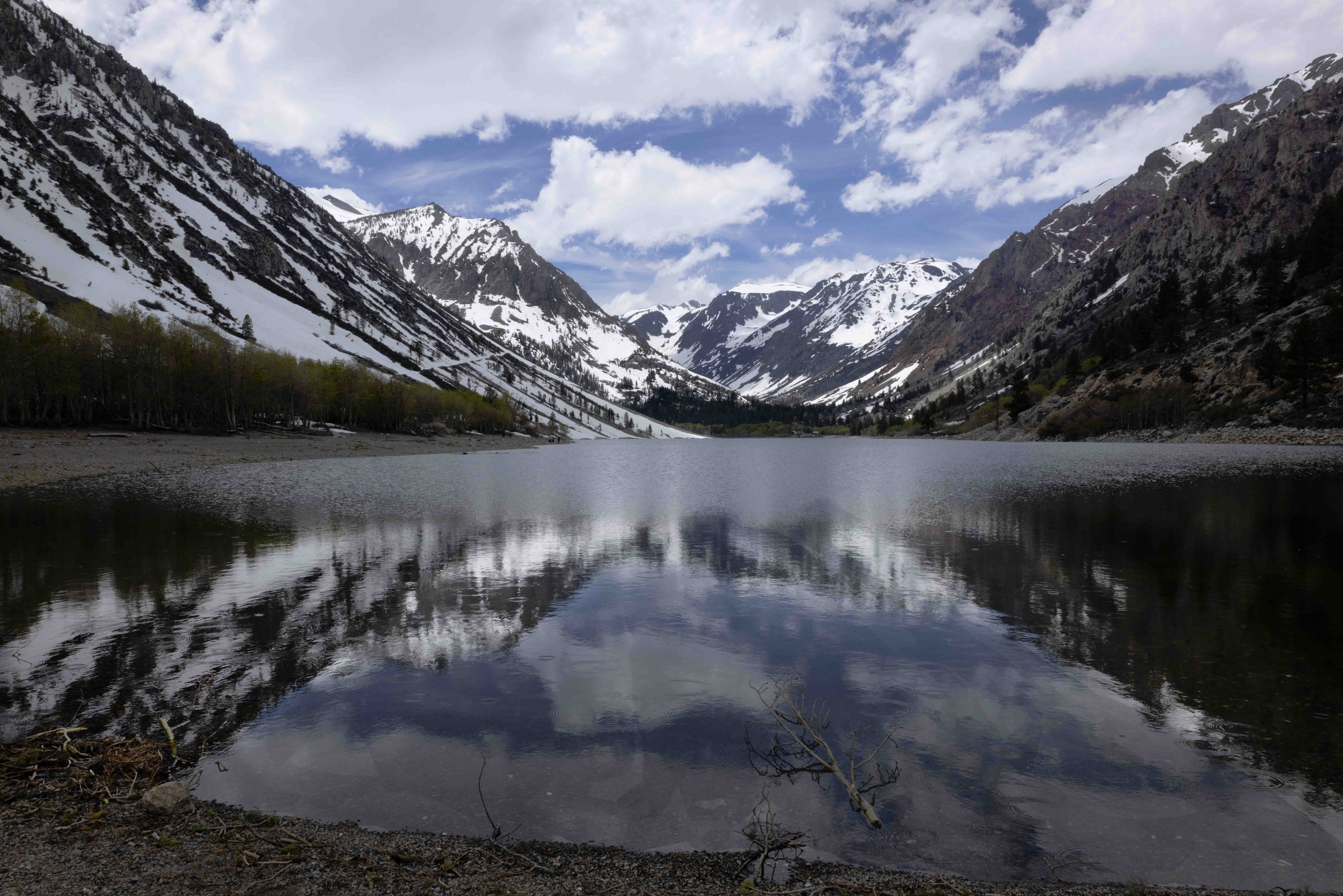 - Eastern Sierra lakes, featuring volcanic Black Point, Lower Twin Lake, and snowy Lundy Lake