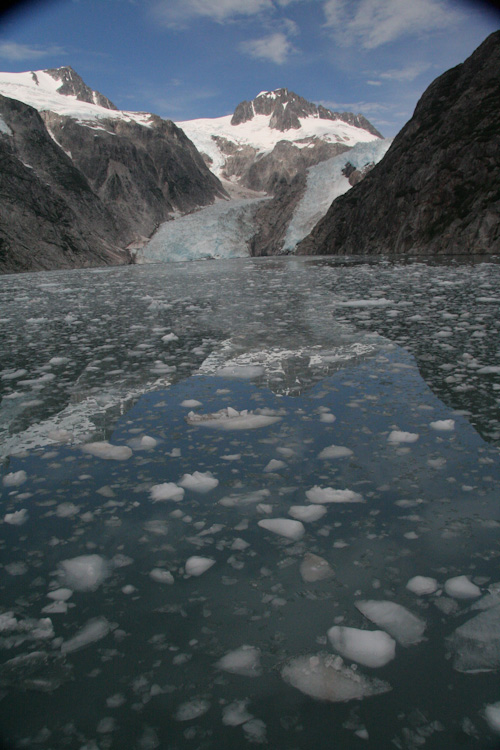 Captain Bob gave us a good long time to gawk at the glacier and observe the calving. The enormous glacier had an awesome, metaphoric presence. The sheer size of a such piece of ice, and the tremendous sound of its calves, were quite powerfully dramatic.