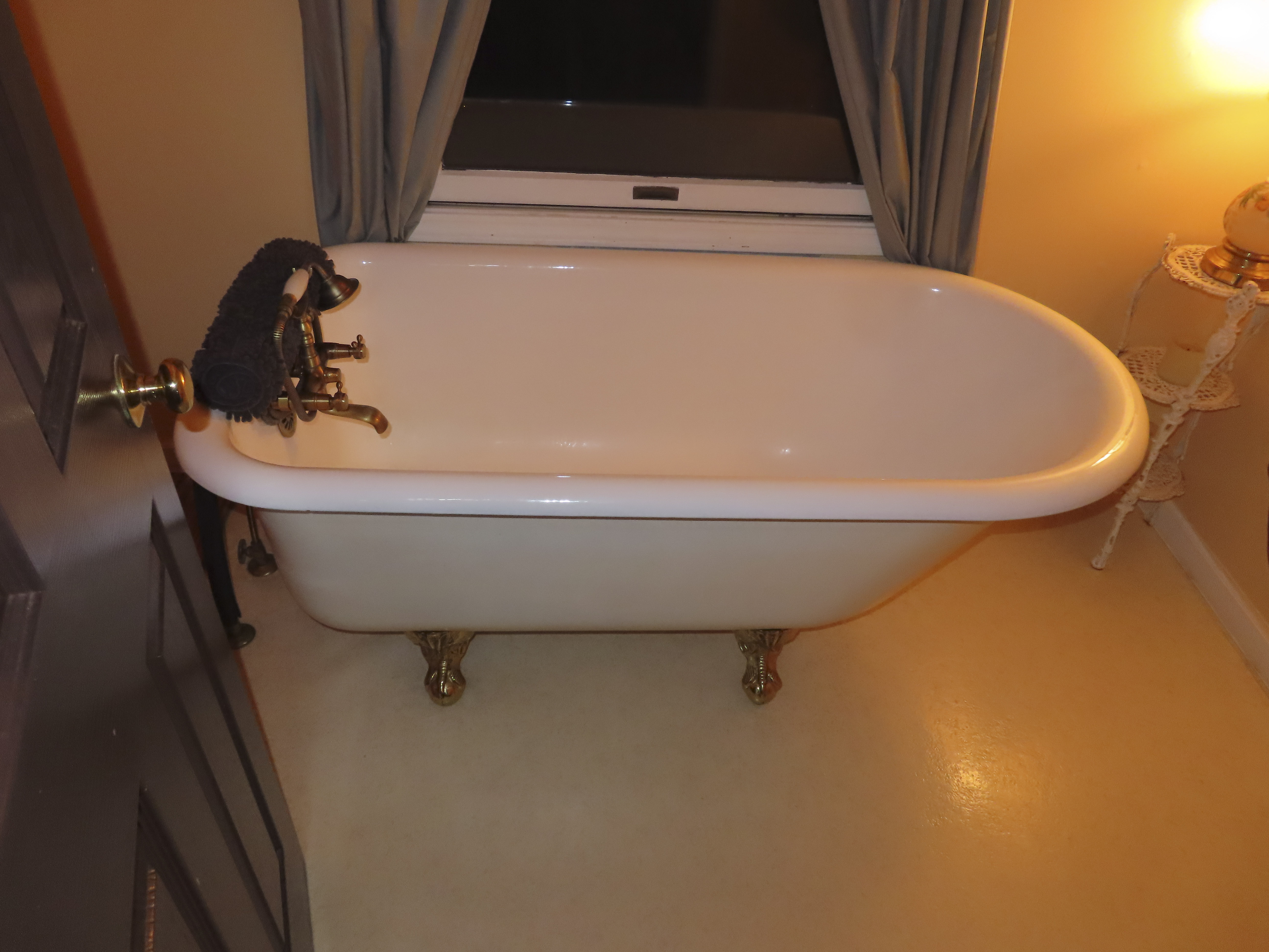 Eric also photographed the deep cast-iron tub. The depth was actually something of a liability, because Eric was recovering from a knee sprain that made it difficult for him to get in and out of the tub.