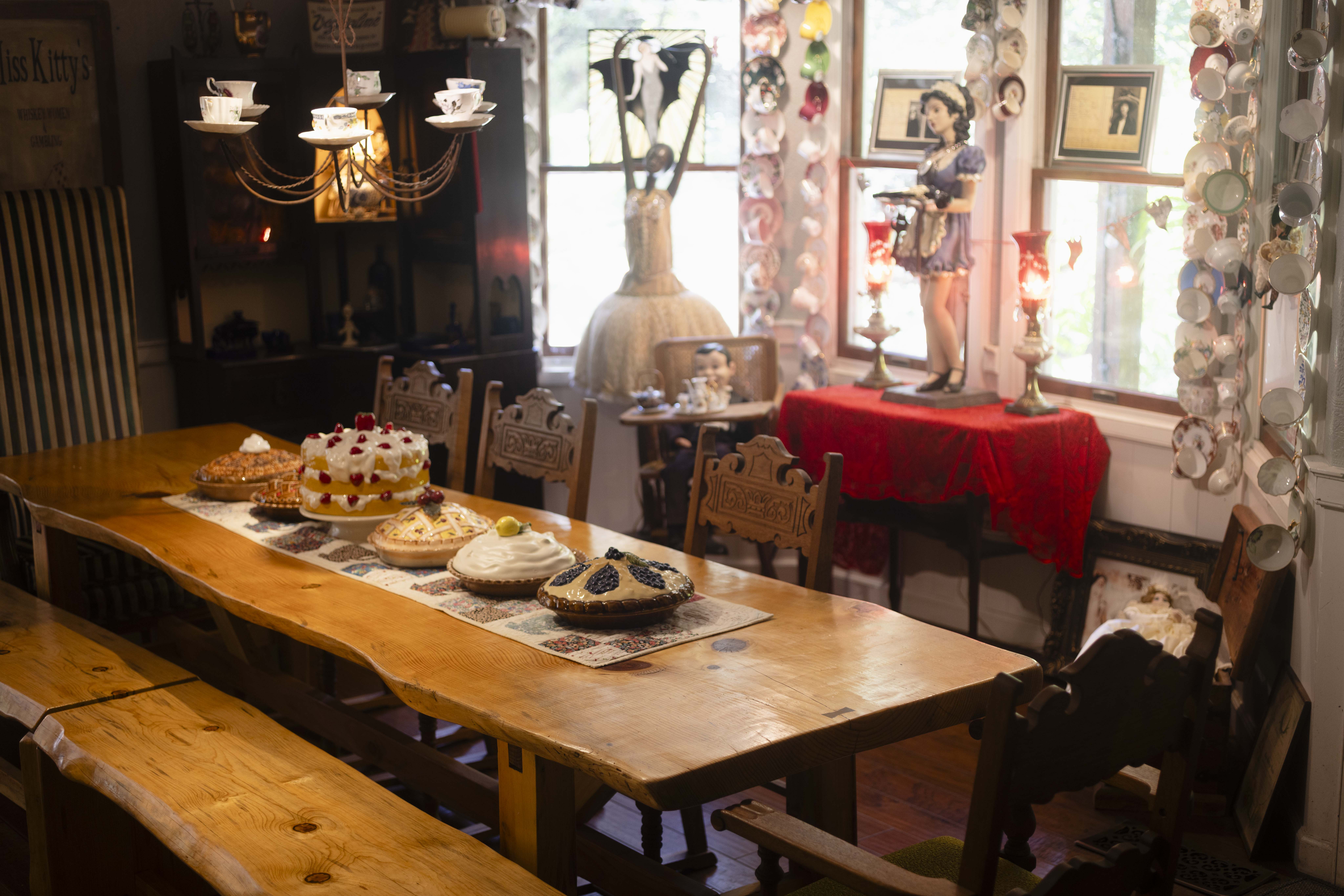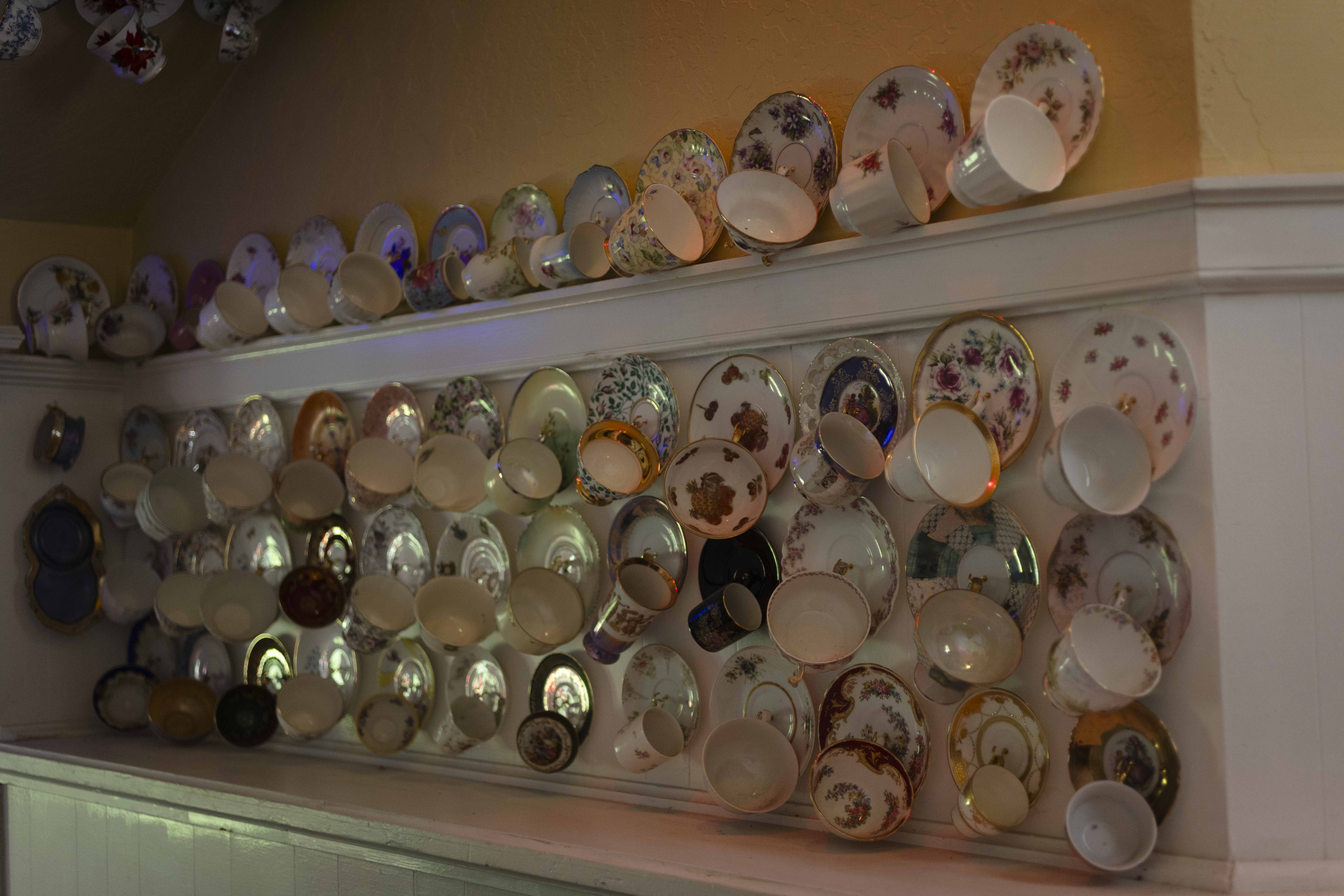 The decor at Flume's End was delightful, but a primary theme was teacups.