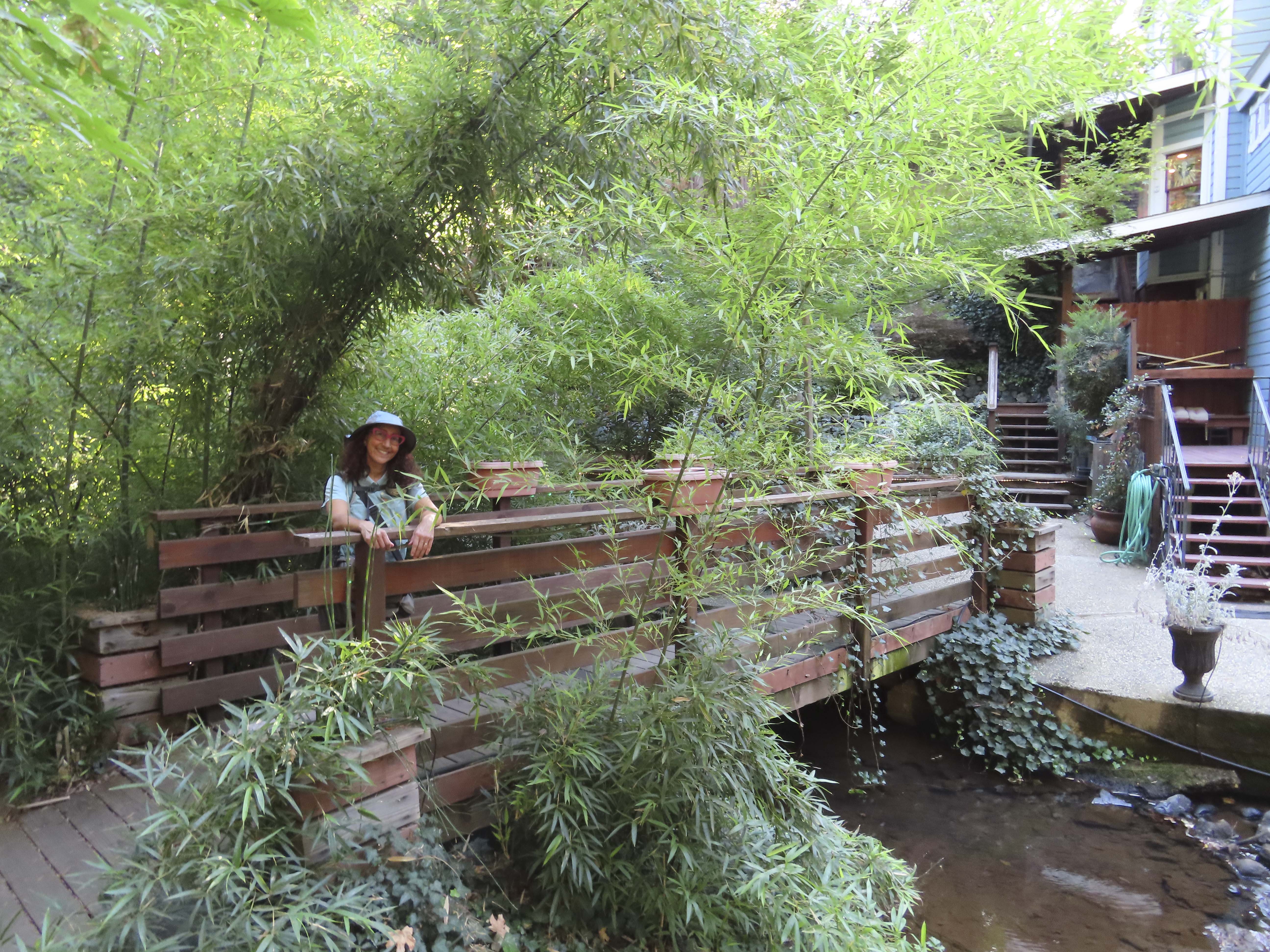 A bridge over the creek was so cute that I took Eric's picture on it.