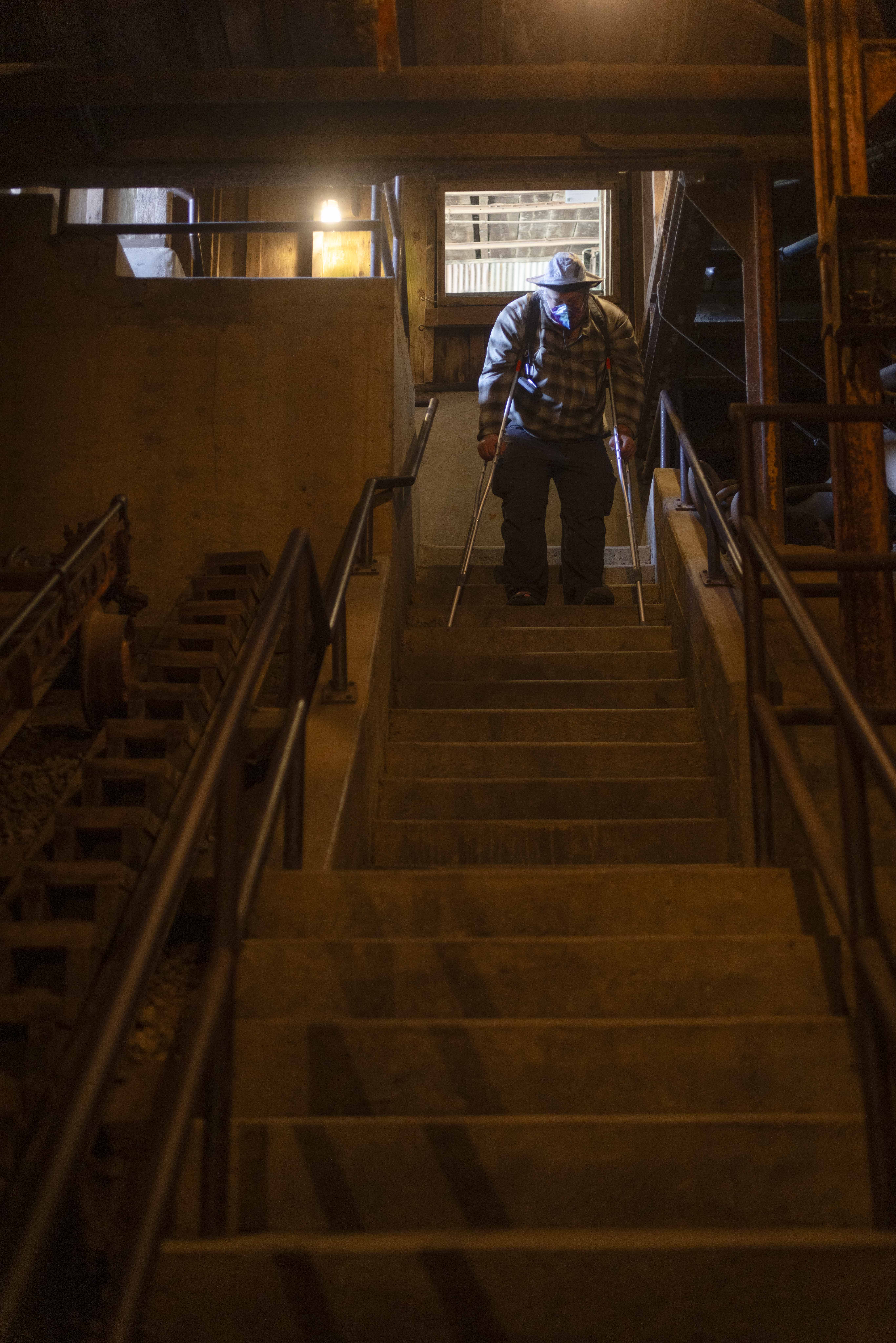 One of the highlights of the park is a view down into the primary mine shaft. I photographed Eric managing the stairs.