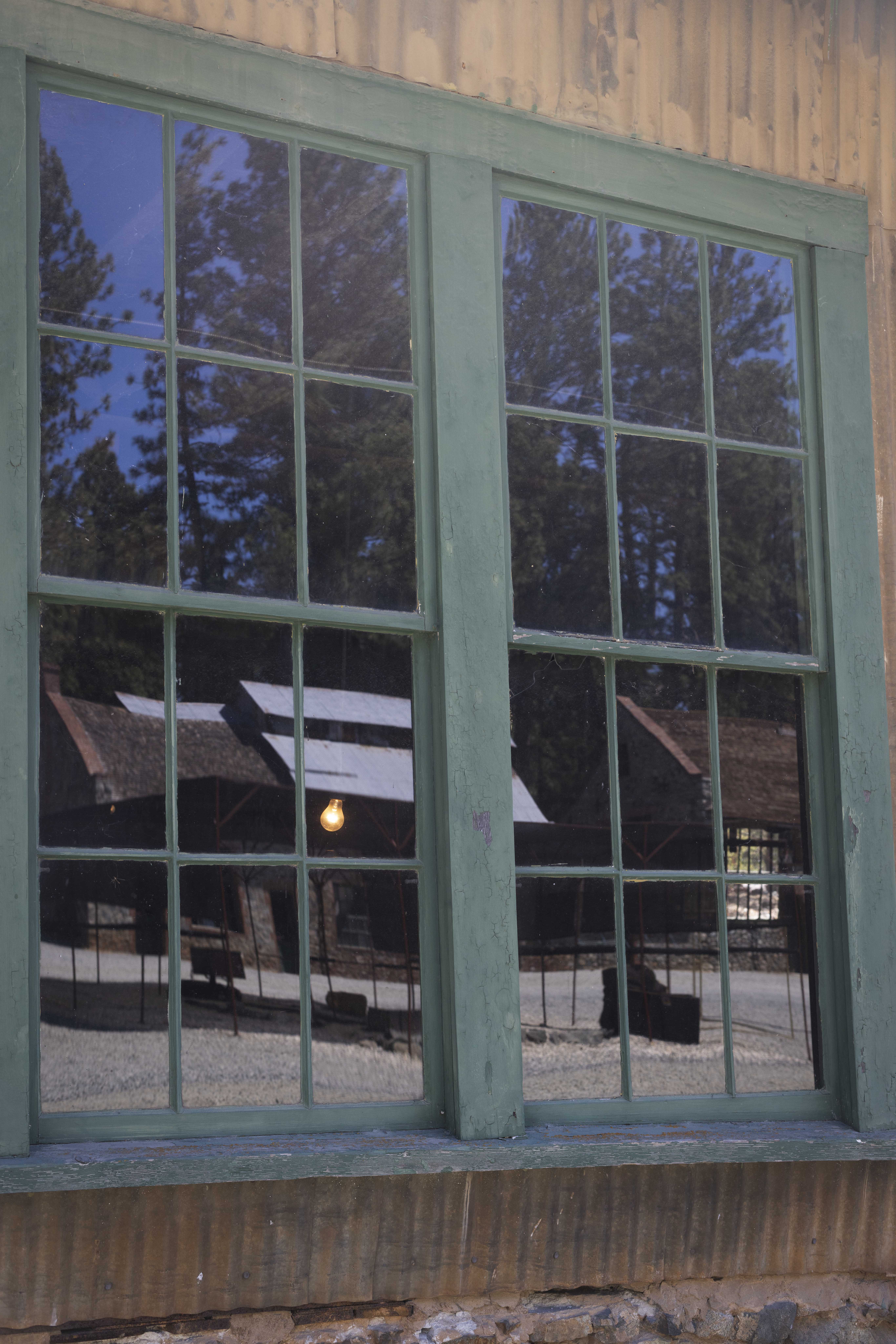 Reflection in antique leaded glass at Empire Mine State Historic Park.