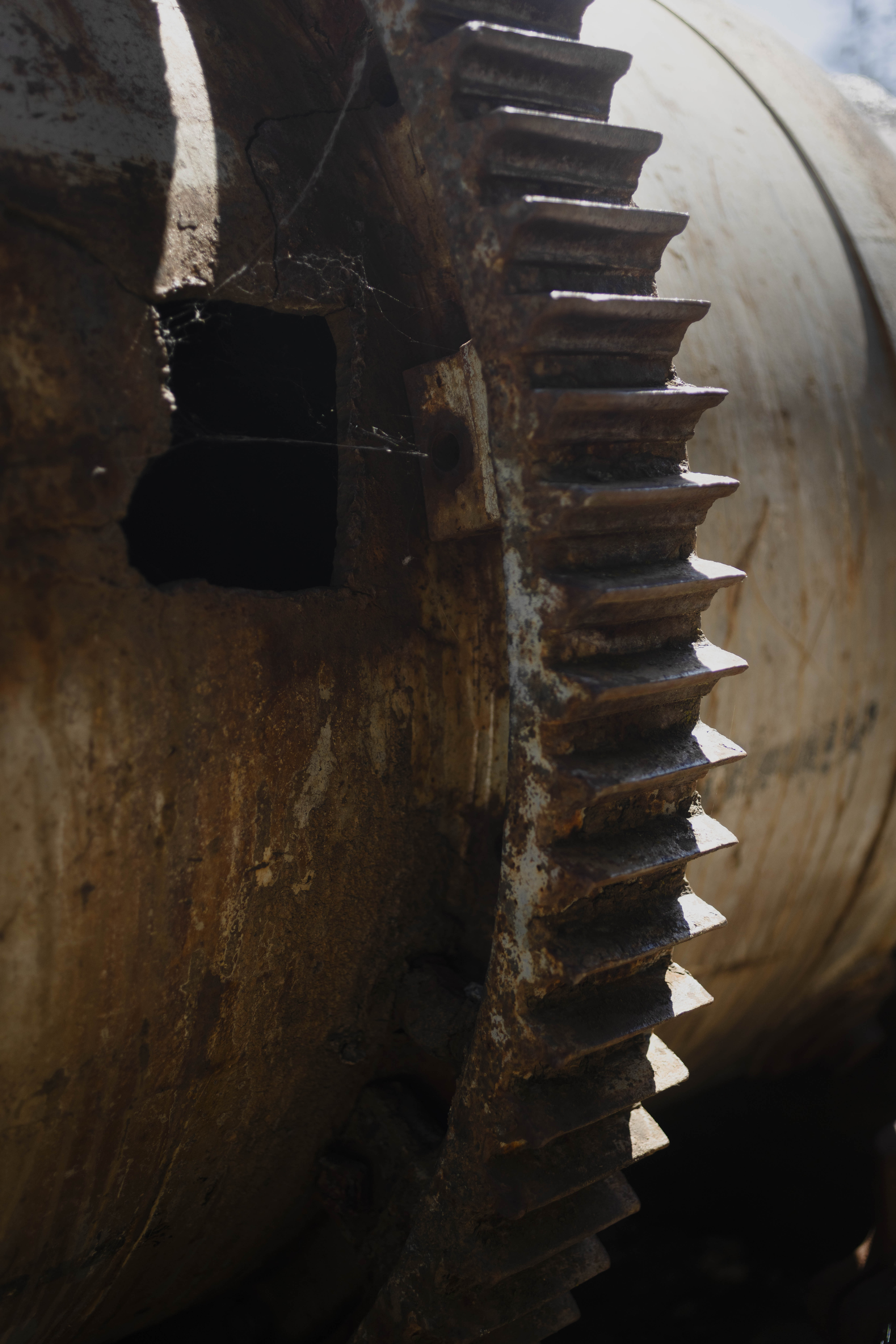 There was a large display of pieces of equipment in a central area of the park, including this giant gear.