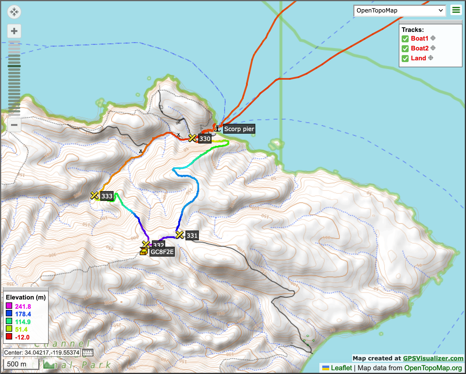 So, in an effort to overcome seasonal depression and comfort ourselves over missing our usual vacation, I planned an excursion for the three-day weekend celebrating the birth of the Rev. Dr. Martin Luther King. I looked carefully at weather forecasts around the state. The Sierra was right out, but the central coast was looking like it might have a relatively dry period on Sunday. I booked a boat trip out to Anacapa Island, reserved a motel in Port Hueneme, and did the geocaching research for visits to three lighthouses.
