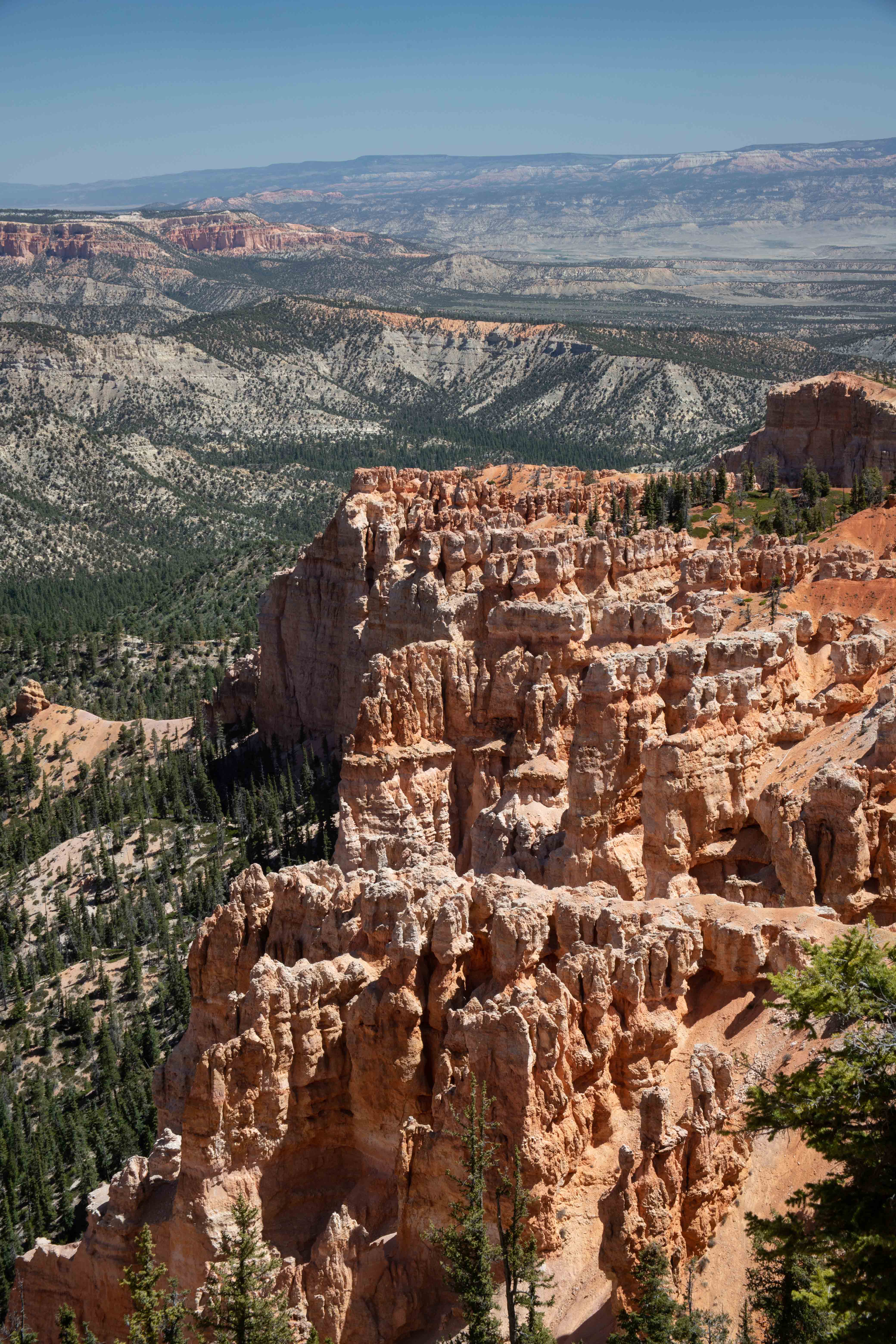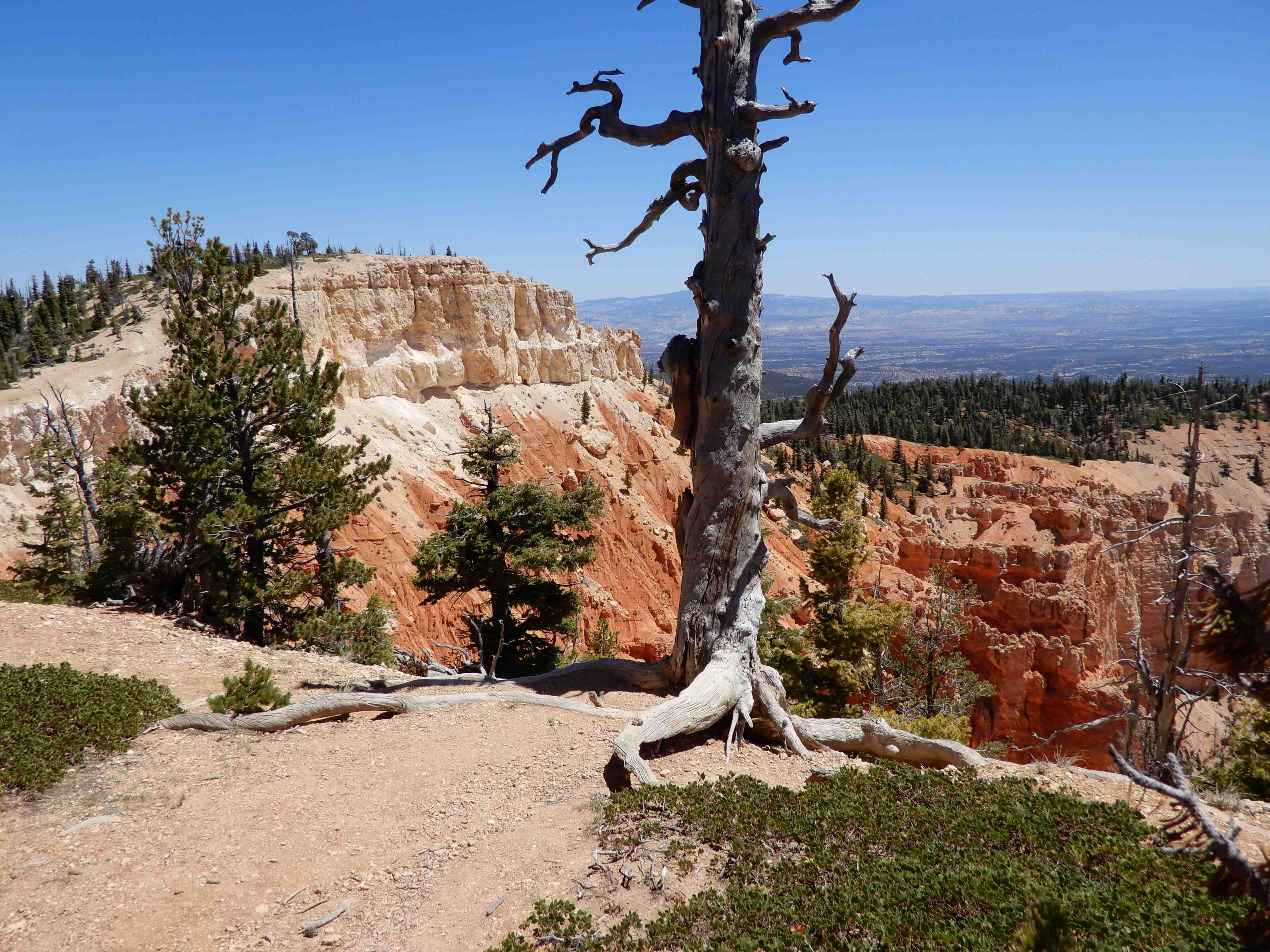 Looking down at the amphitheater from the Bristlecone Loop Trail. Even from this high overlook, it was impossible to show the enormous size of the nearly circular Bryce Canyon... um, Amphitheater. You would need to do aerial photography. Note the tilting and folding of the earth in the distance--this is faulted country.