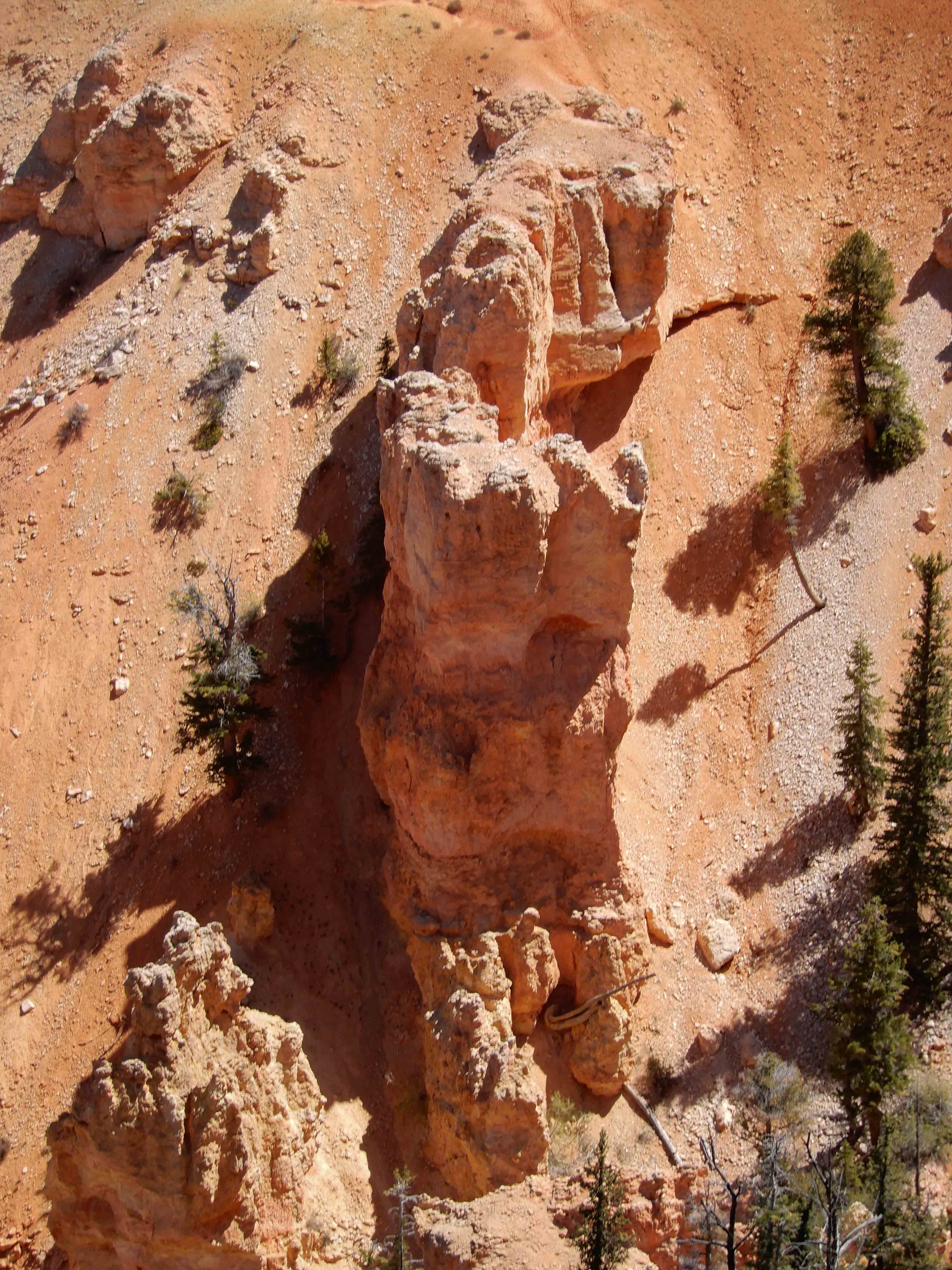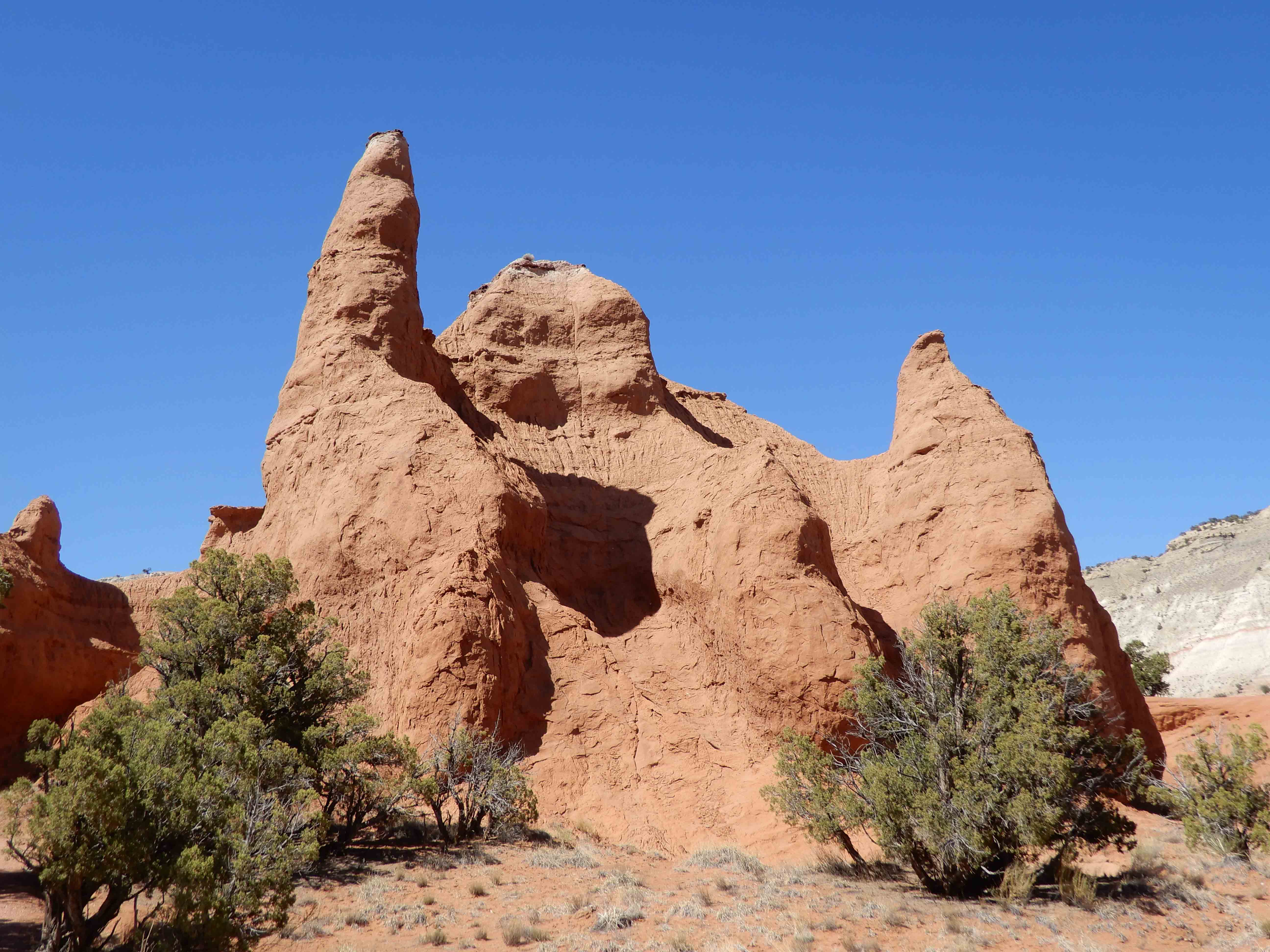 Kodachrome Basin is known for its sedimentary pipes. These pipes were not caused by erosion; they are made of sediments that shot up out of underlying rock under the pressure of overlying rock. It is possible that liquefaction of the rock caused by an earthquake may have contributed to the creation of the pipes. [SOURCE: Roadside Geology of Utah by Felicie Williams, Lucy Chronic, and Halka Chronic]