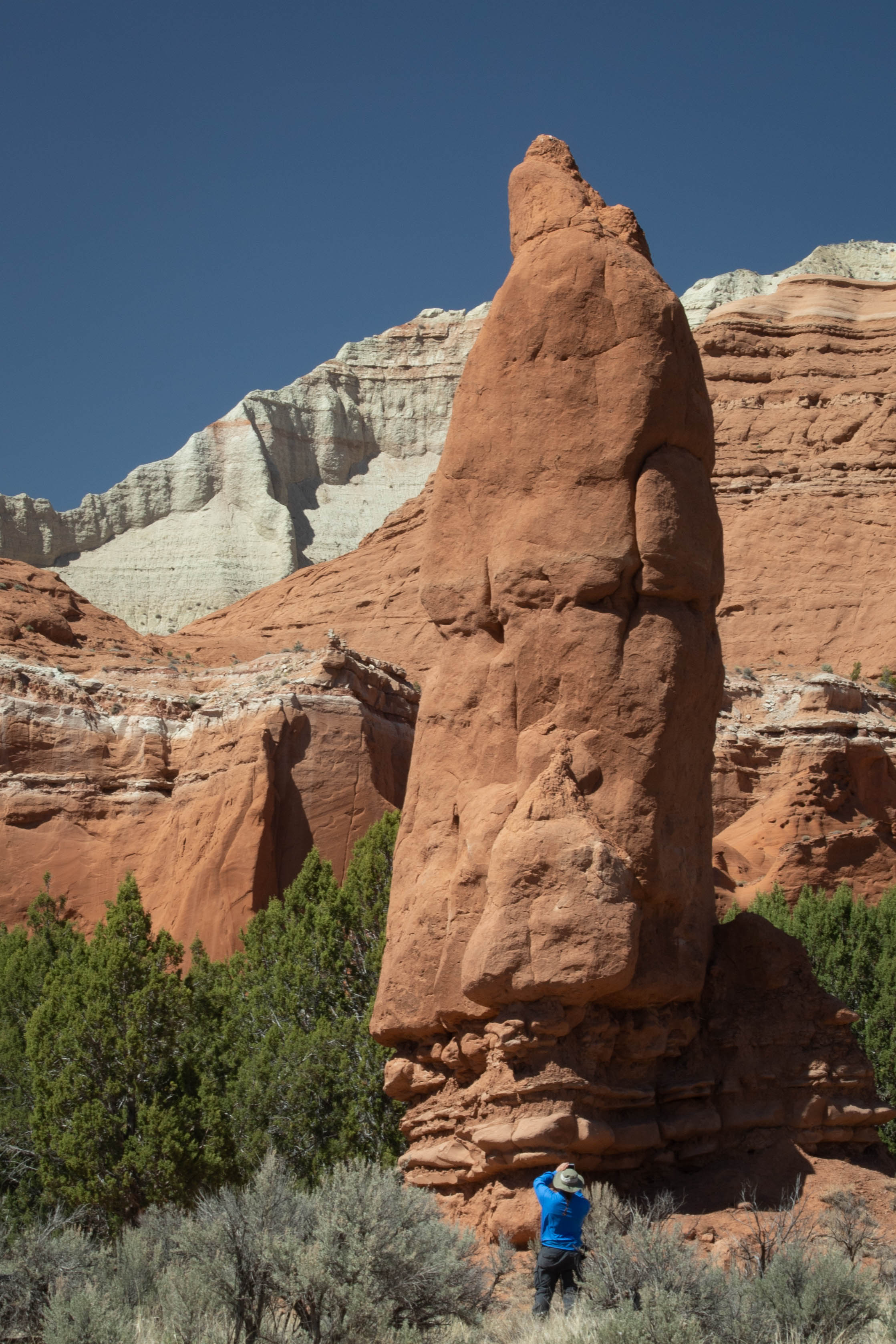 At this point, it was still early afternoon, but we had completed my agenda for the day other than stopping in to see the Visitor Center (something we always manage to do on our way out of a park). We had a very heavy schedule planned for two days later, when we would try to visit Kodachrome Basin State Park and then drive down Cottonwood Road through Grand Staircase Escalante National Monument, trying to see as many of the geologic sites along that road as possible. We decided to put the Visitor Center off for that day, and spend the rest of this day going out to Kodachrome Basin.