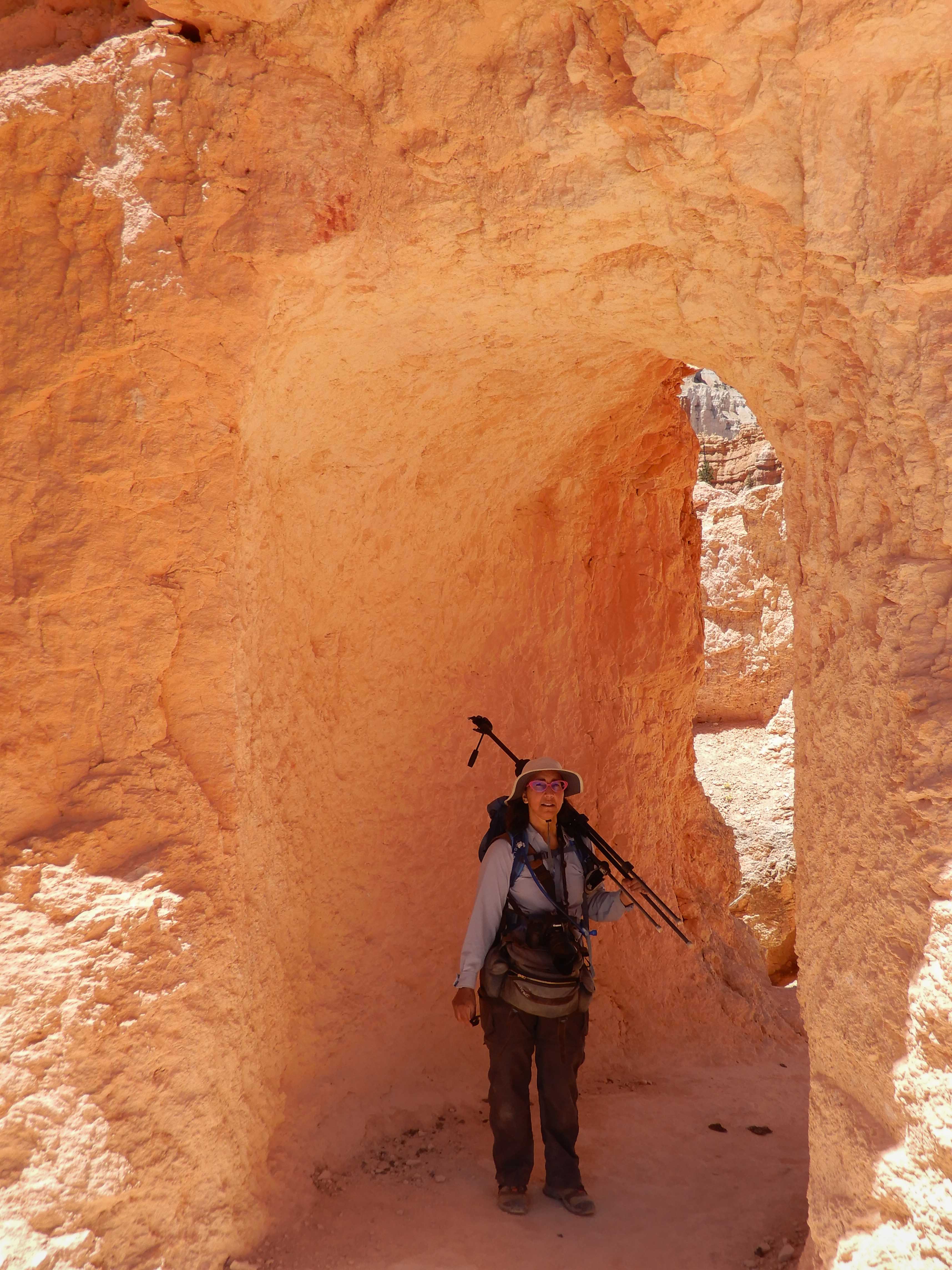 While the Queen's Garden and Navajo Trails were popular, the Peek-a-Boo Loop Trail was relatively quiet (except for occasionally being passed by groups on horseback). Eric took a picture of me hiking the beautiful trail.
