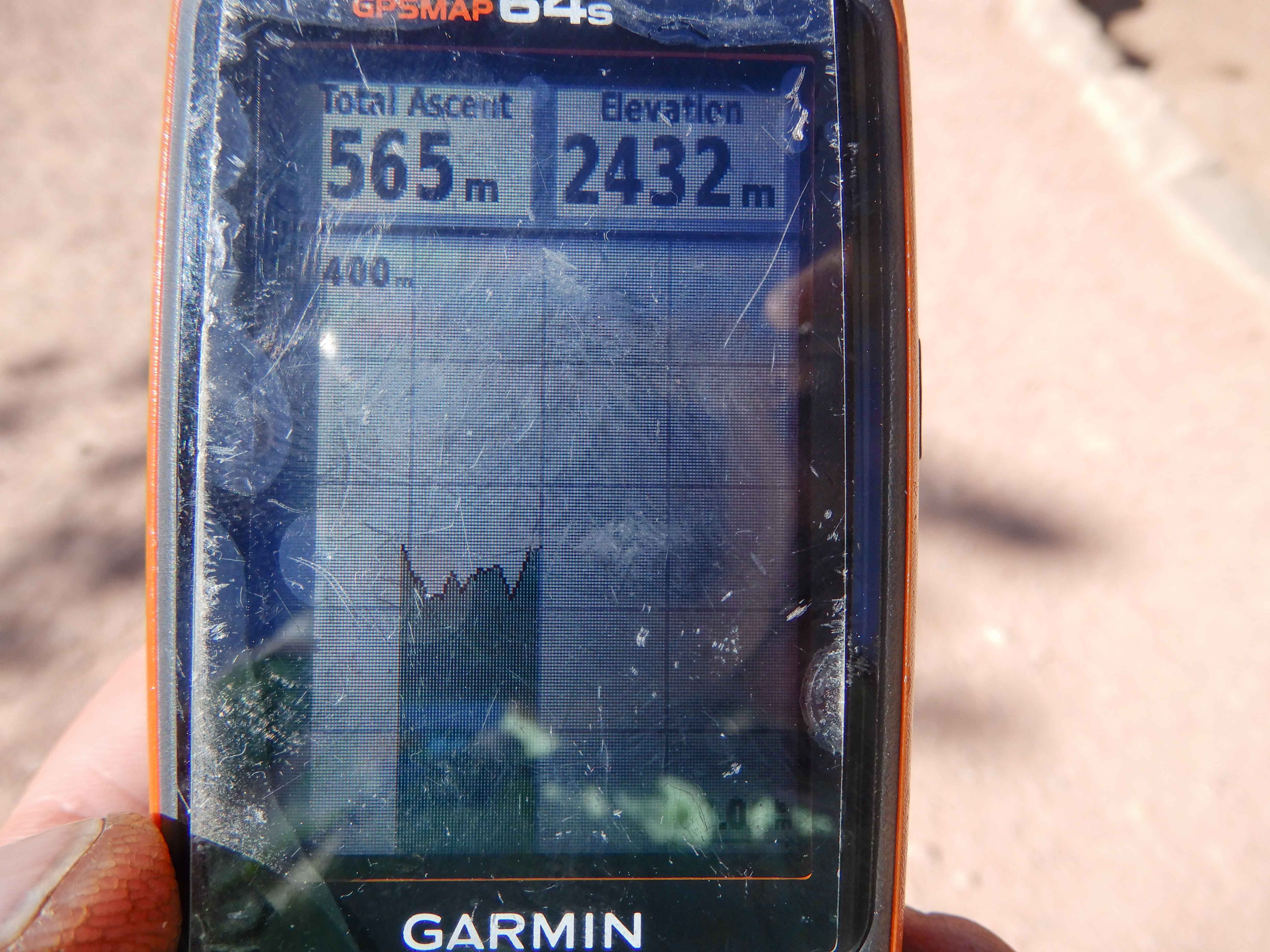 At last, after a most satisfying hike, we reached the top of the ridge and congratulated ourselves. Eric took a picture of the GPS displaying our elevation profile. You can see how we did a very steep descent on the Queen's Garden Trail, then went all over up and down on the Peek-a-Boo Loop Trail, then did a very steep ascent on one side of the Navajo Loop Trail. We completed the Figure 8!