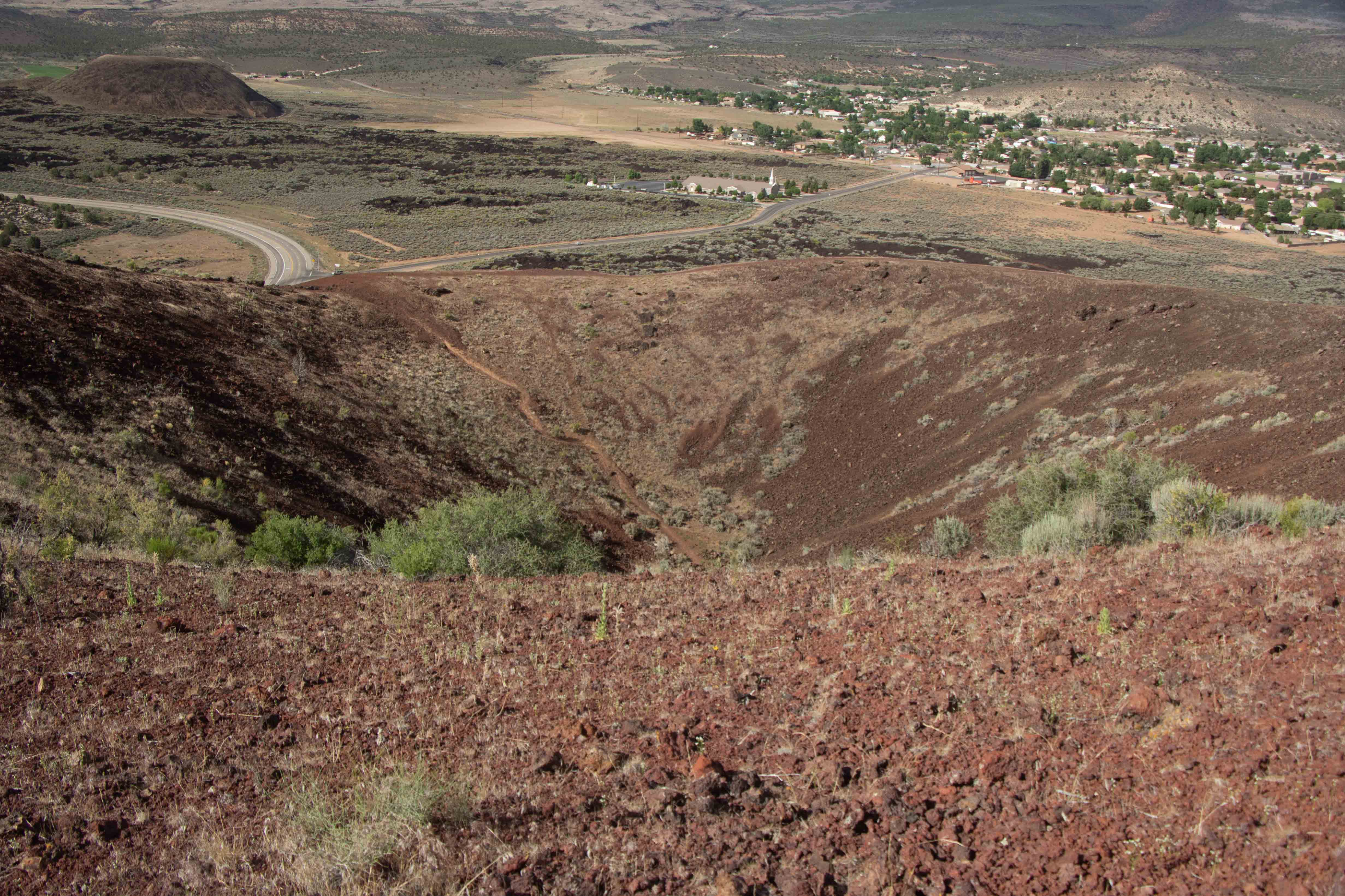 Briefly, the geologic story of the Colorado Plateau is that, near the end of the Mesozoic Era (100 million years or so ago), the Atlantic Ocean opened up, separating North America and Europe. As North America moved west, its western edge plowed over the other plates to the west, lifting the Colorado Plateau, and then the Rocky Mountains, from underneath. The Sierra Nevada also rose, and the Basin and Range Province between the Sierra and the Colorado Plateau sank and spread. There is a very steep drop at the western edge of the Colorado Plateau, a bit east of the Utah-Nevada border. Six to ten million years ago, faulting action there opened the Gulf of California all the way out to present-day Lake Powell. With a virtually suddenly opened path to the Pacific Ocean, the headwaters of the Rockies rushed through the Colorado Plateau, cutting gorgeous canyons like no others anywhere. More recently, volcanism has occurred on the Plateau. This is a highly unusual place with no end of opportunities for geologic and scenic exploration. [SOURCE: Pages of Stone by Halka Chronic and Lucy Chronic]