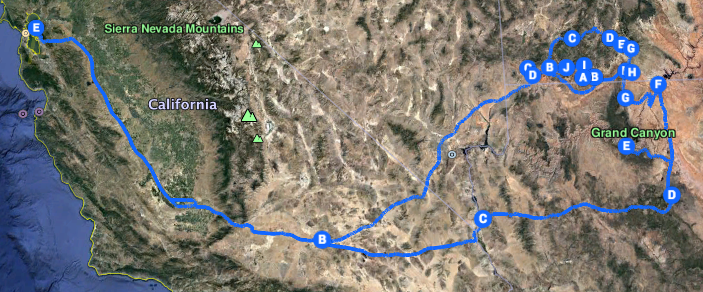 Google Map of our route through the area of our travels.