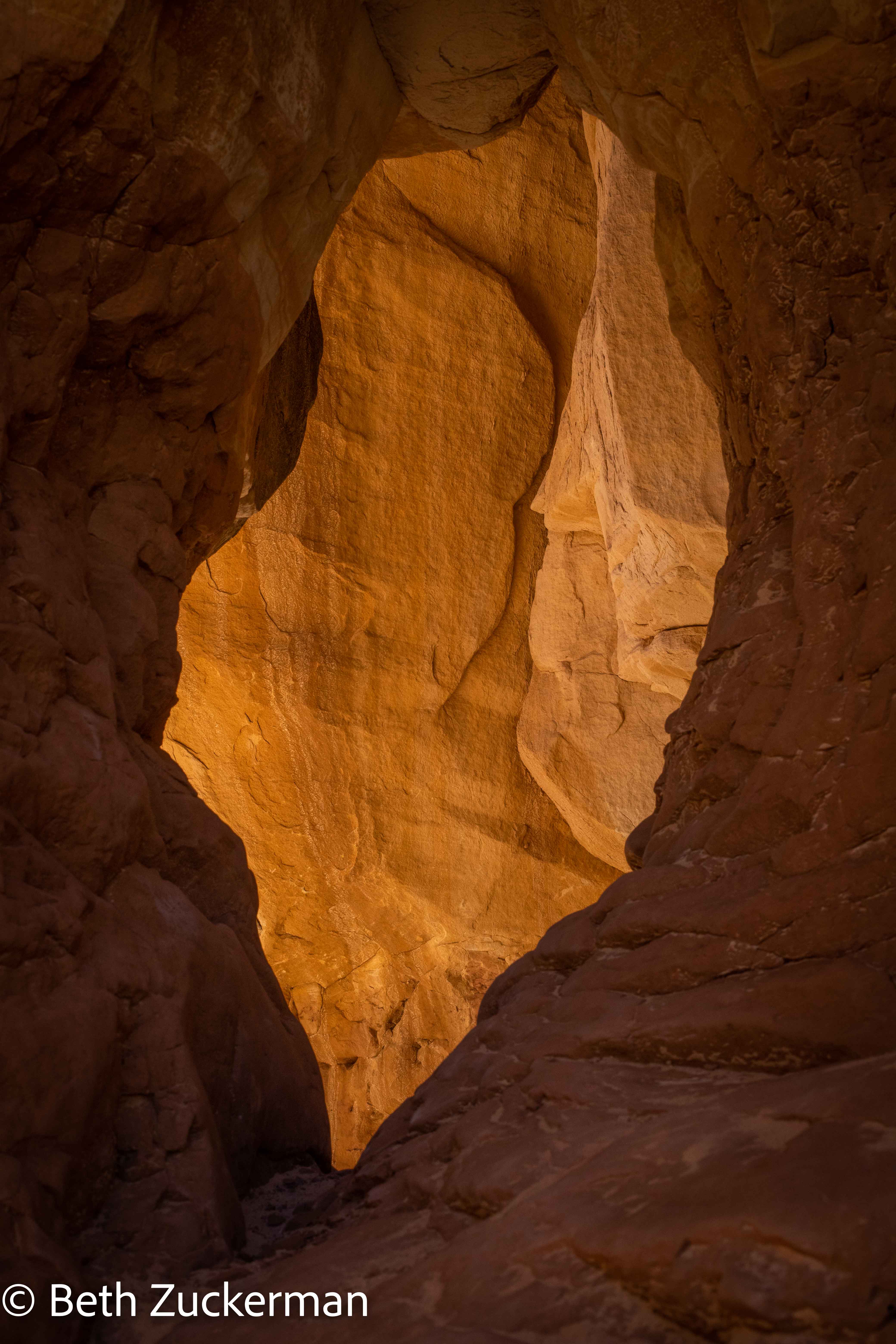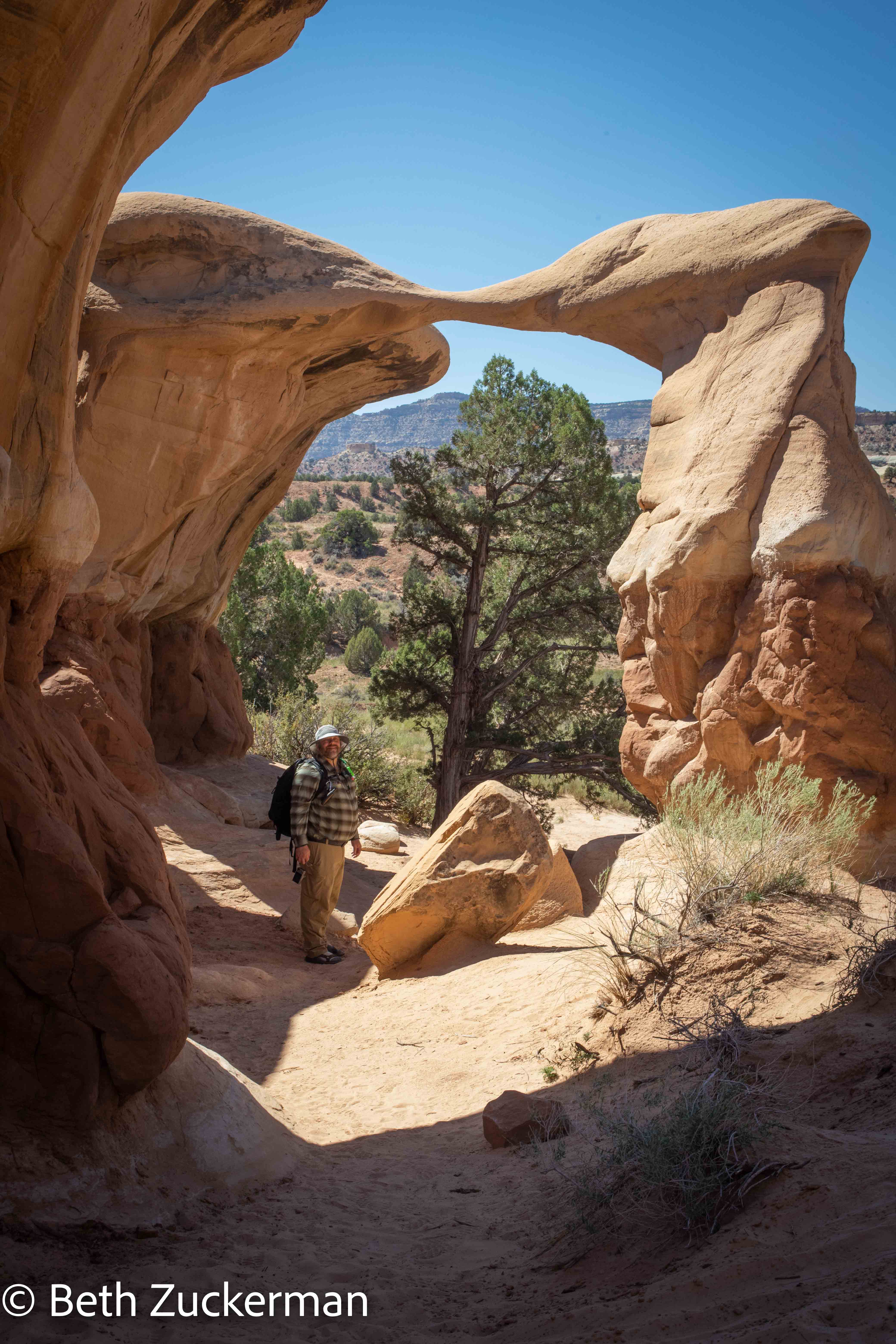 Our plan after Devil's Garden involved driving further down Hole-in-the-Rock Road, not all the way to the hole in the rock overlooking Lake Powell in Glen Canyon National Recreation Area, but far enough to see a couple of slot canyons. Unfortunately, we hadn't read enough about the hike before we left, and it turned out to be much further than we had expected. We set out with my 3-kg/7-lb tripod, and Eric in sandals and without his poles.