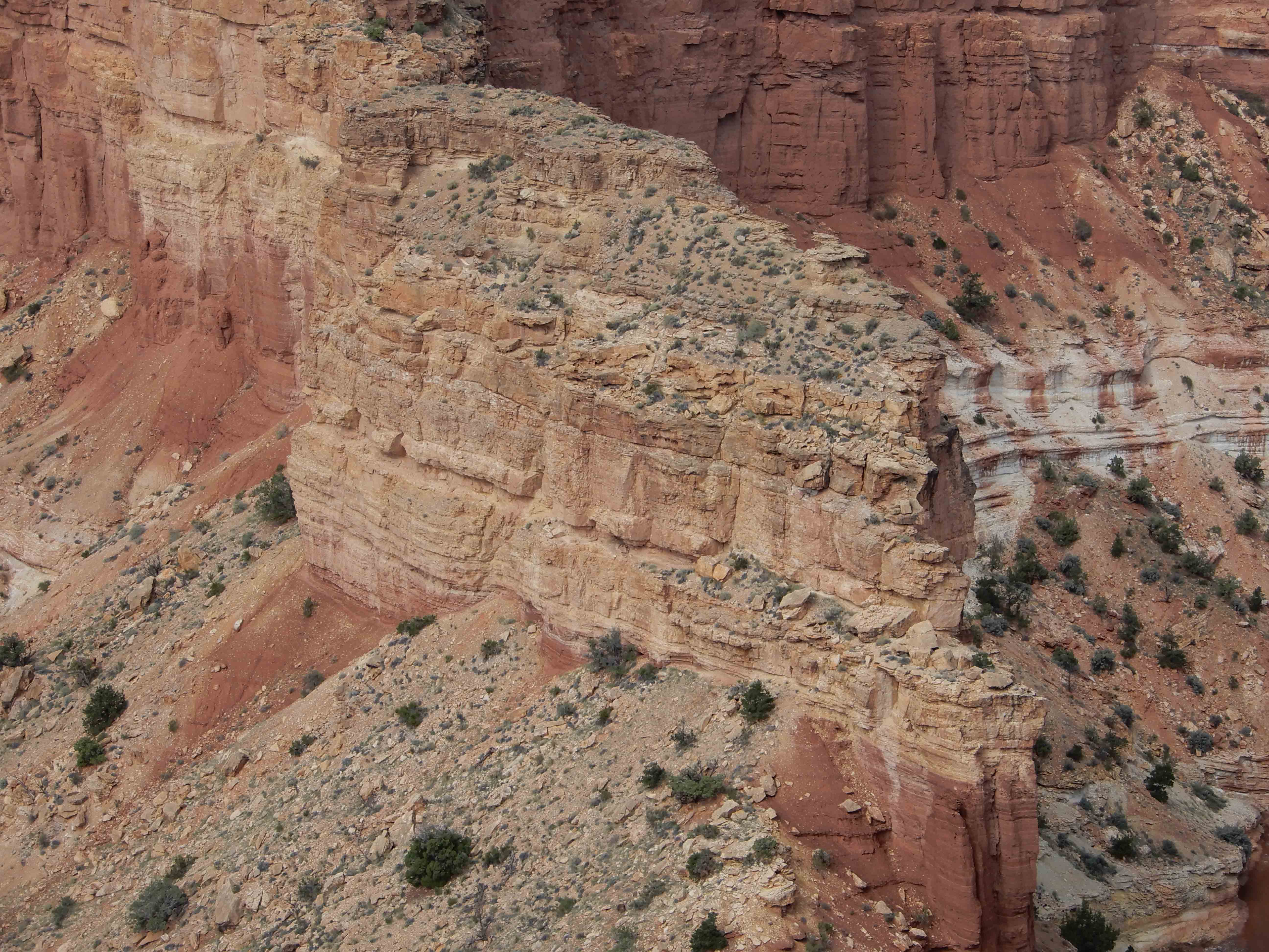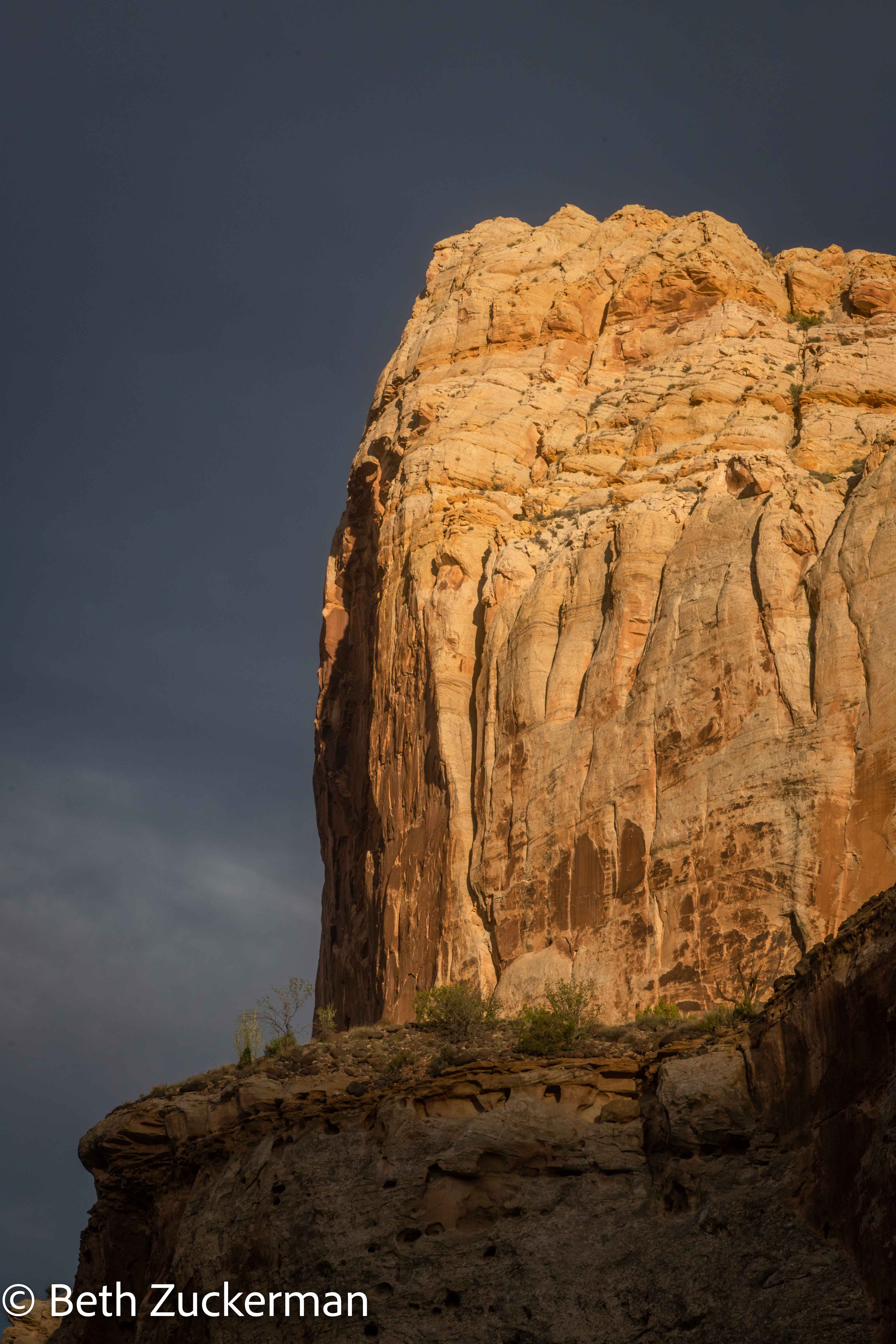 Geologically wonderful Capitol Reef National Park, at the western edge of the Colorado Plateau, is defined by a 160-km/100-mi long anticline feature called the Waterpocket Fold. Roadside Geology of Utah by Williams, Chronic, & Chronic tells us that the Waterpocket Fold was lifted by subduction of the historic Farallon Plate under the North American Plate. Like the Sierra Nevada, and for the more or less the same reasons, the Waterpocket Fold is much steeper on its east side than its west. The park has excellent exposures of fascinating rocks, and many canyons to explore.
