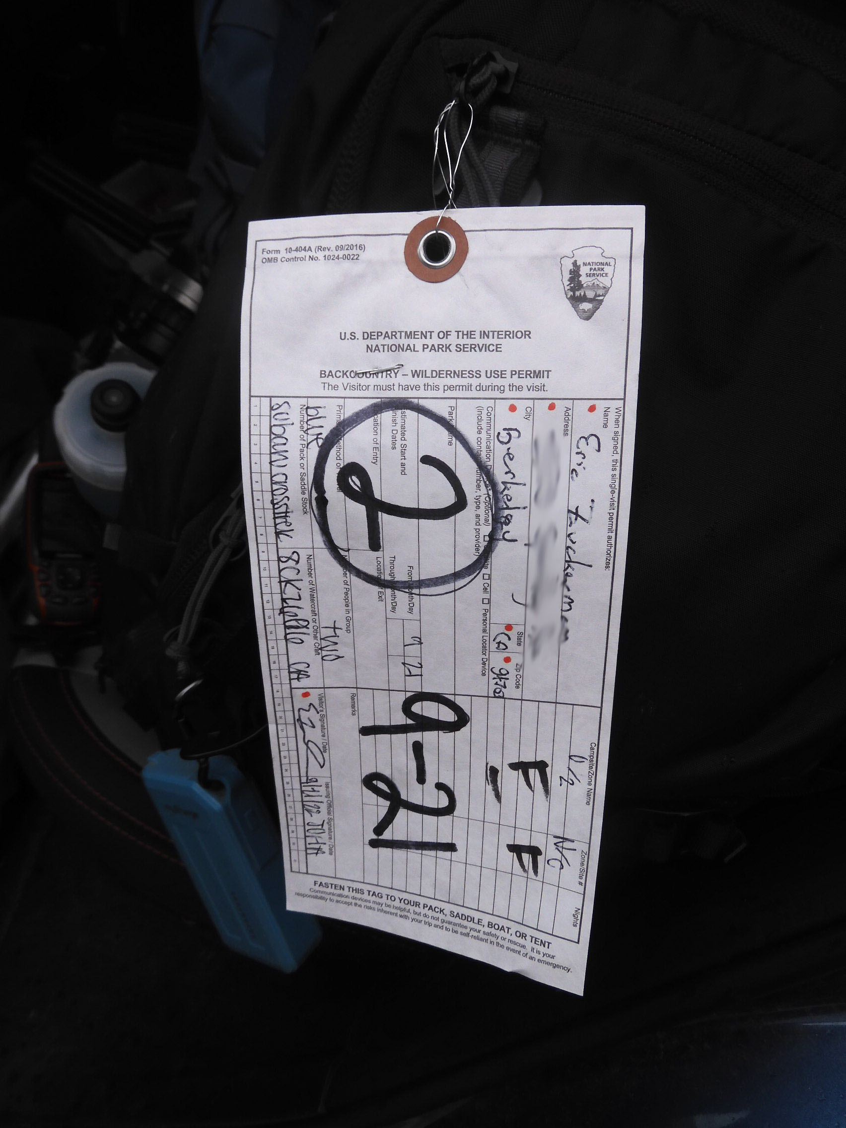 Our permit, photographed by Eric.