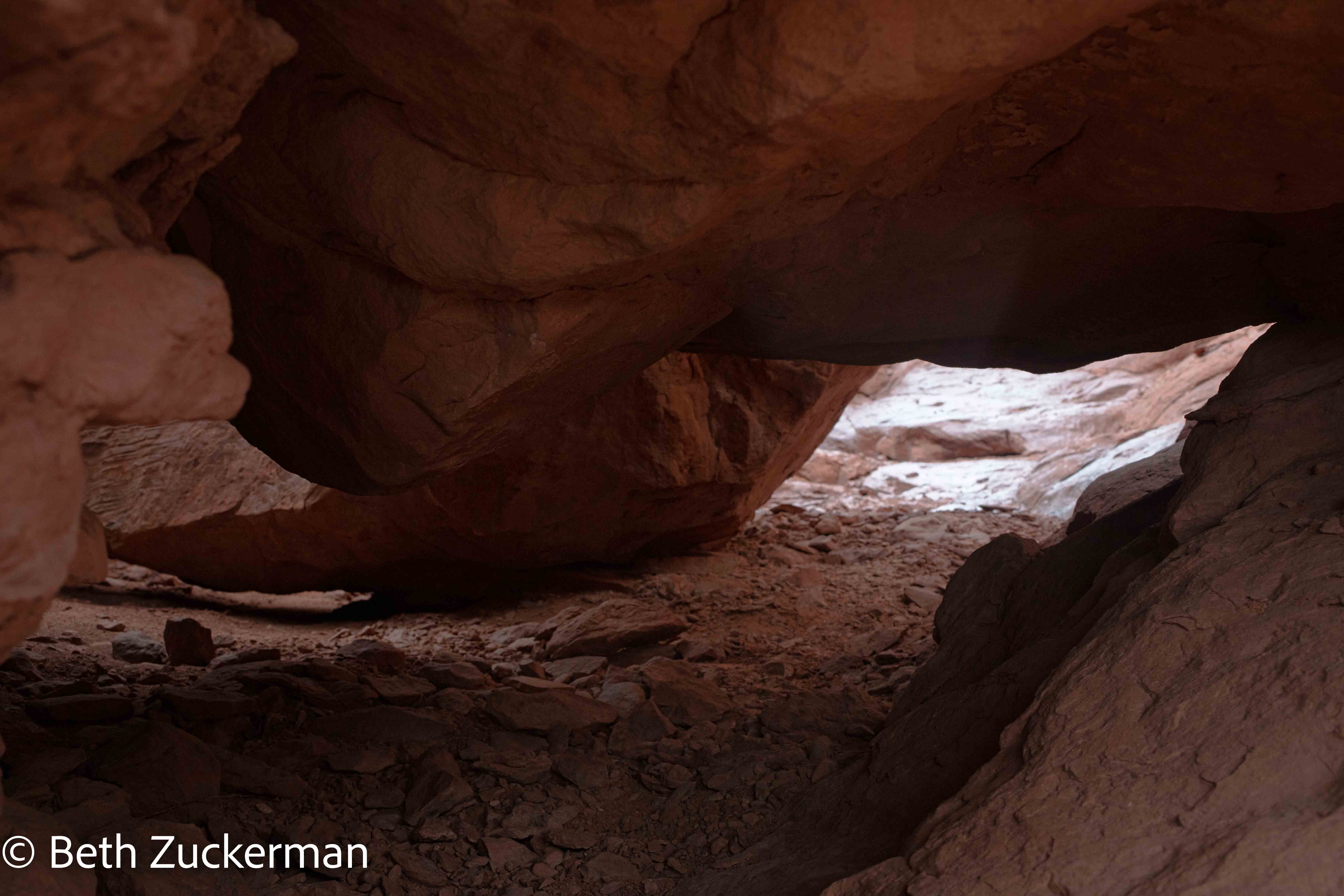 We accidentally hiked the loop in the wrong direction, which may have added additional challenges for us. In one place, we had to ascend a slope that was very close to being a technical climb. The sandstone broke under our grip as we tried to climb it. Eric had to push my butt in order for me to get up, and then managed the ascent by putting a rock at the bottom to use as a step.