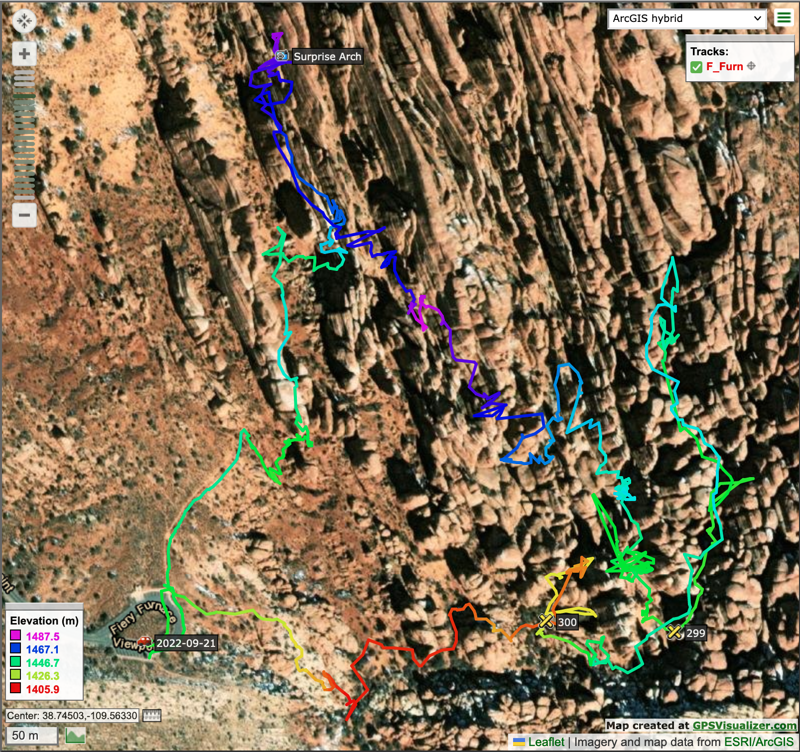 Map of our Fiery Furnace excursion.