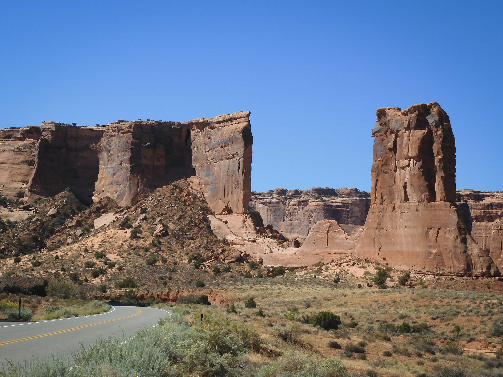 The Devil's Garden campground is at the north end of the park, while the Visitor Center and entry are all the way at the southern end, 29 km/18 mi away. We didn't have a lot of time to stop and see sights along the road as we headed for the campground, but we stopped for a few.