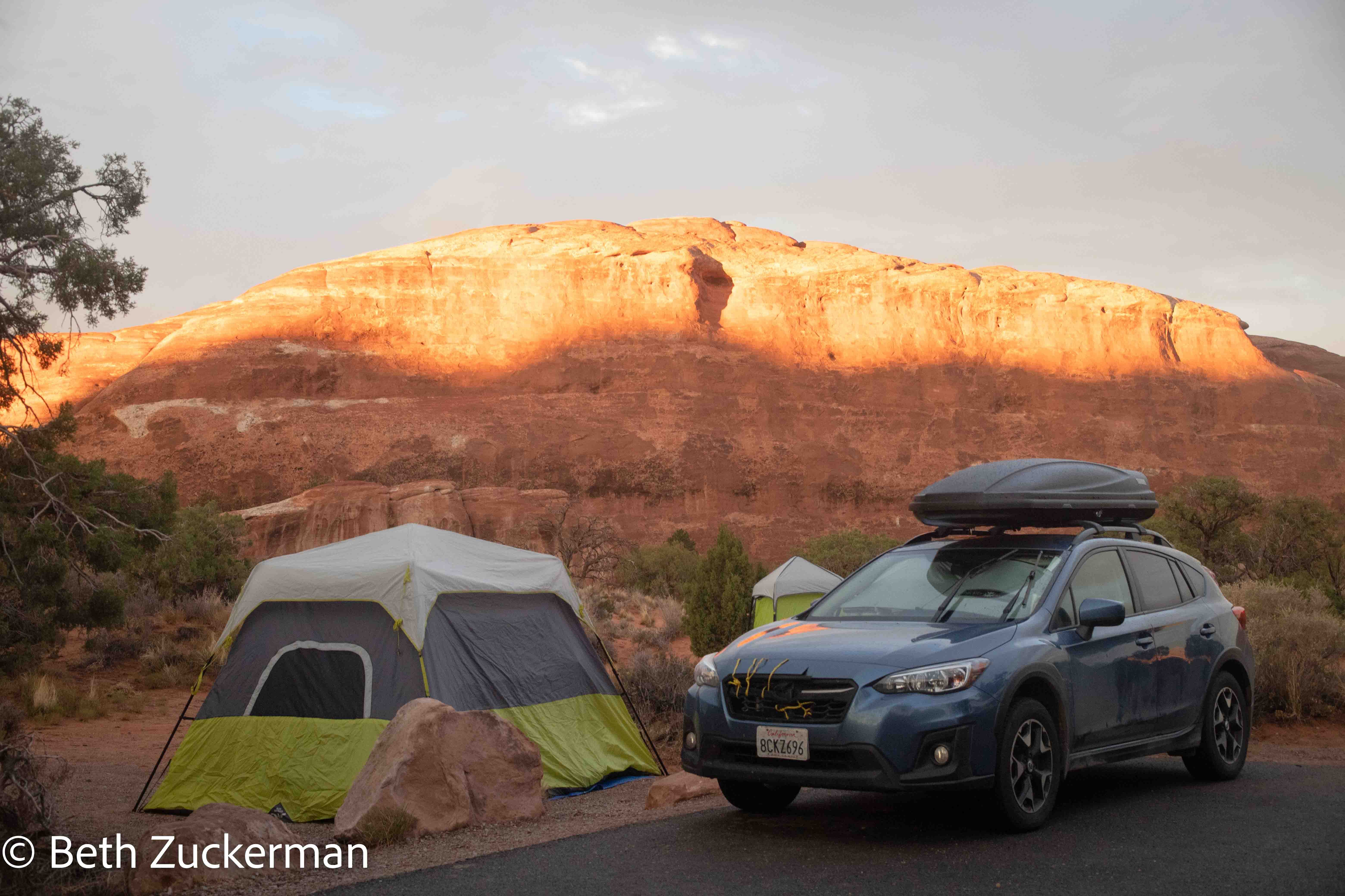 Camping, for all of its inconveniences, is the best way to visit Arches. Even with the reservation system, and on a rainy day, there are long lines for entry. Campers only need enter once. Photo by Eric.