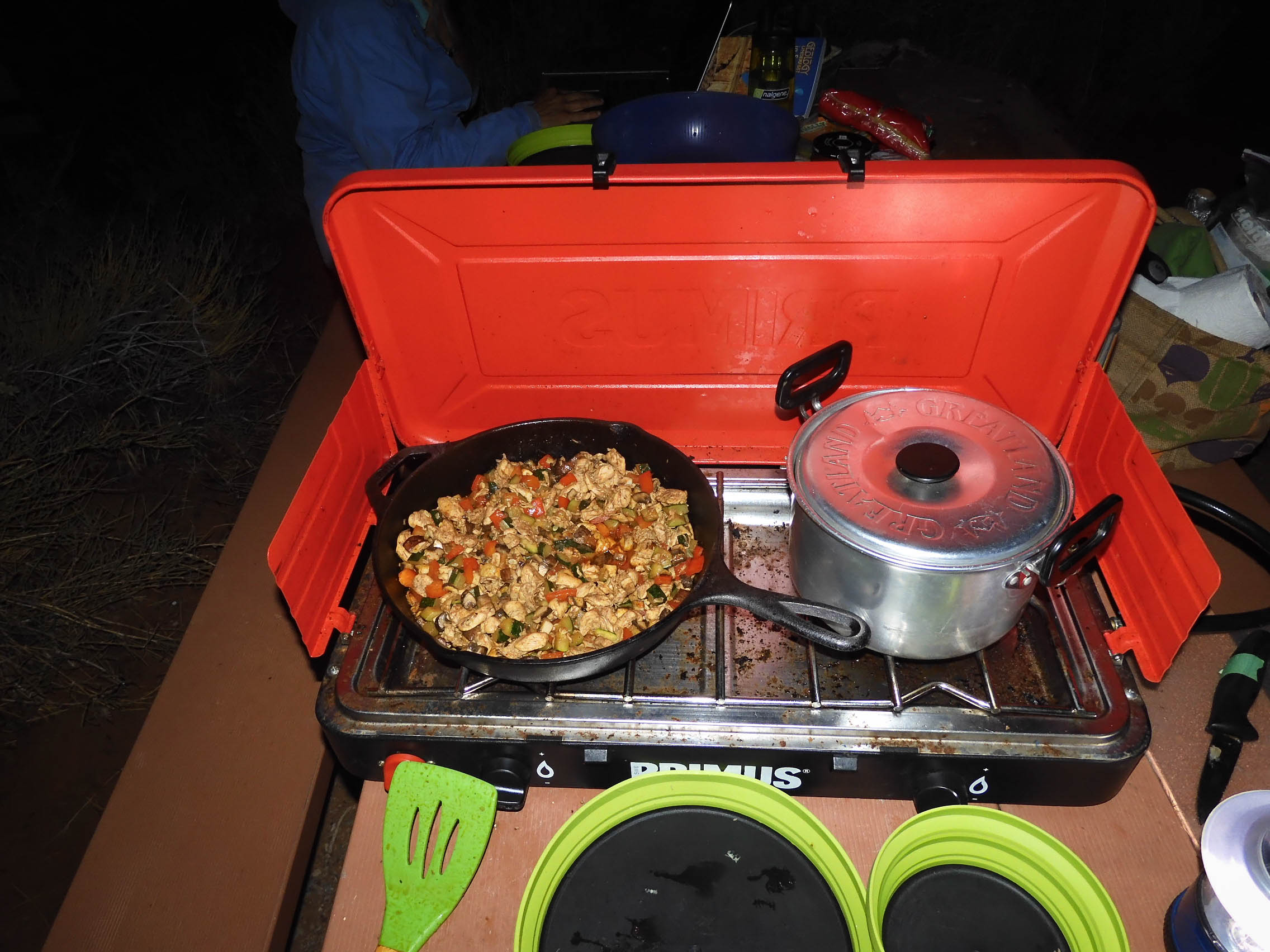 As Eric was starting to make dinner on our camp stove, Susie came around on her golf cart again. This time, the bad news she brought was that thunderstorms and possible flooding were expected overnight.