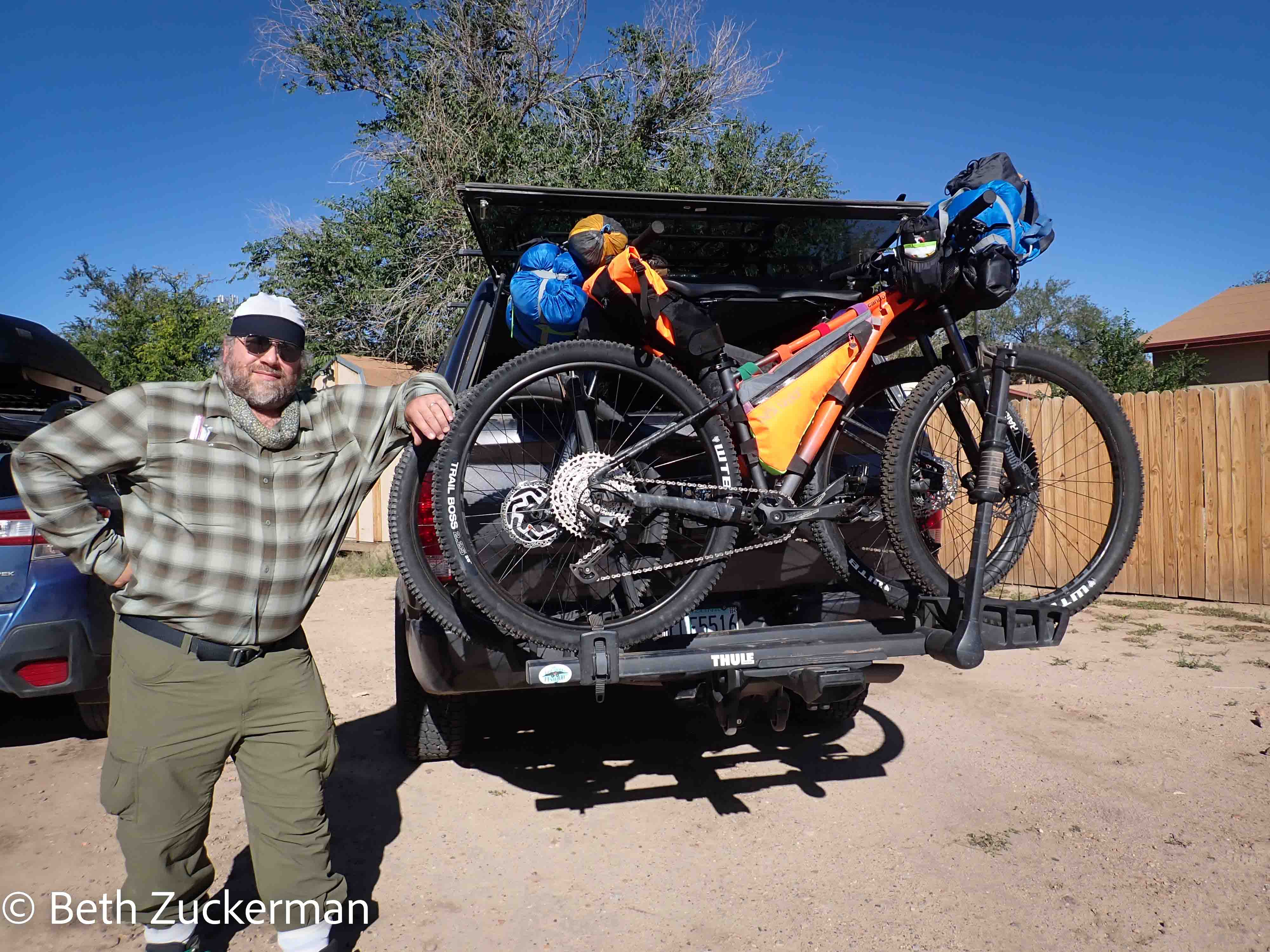 Jon and Nadine helped us load our bags onto our bikes, and then loaded our bikes onto their truck. Nadine thought our massive tires were "too skinny."