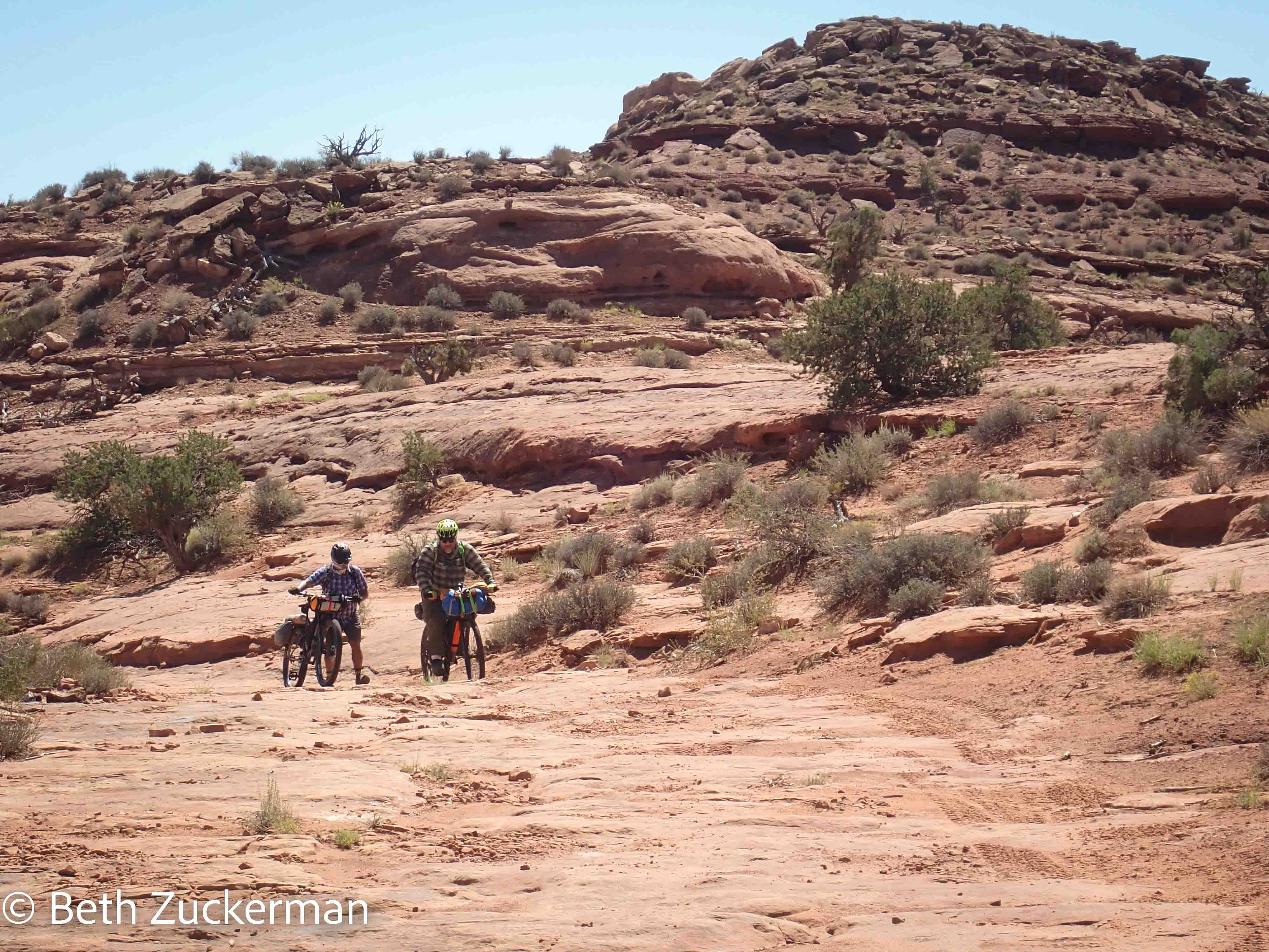Nadine took the truck back home, and Jon guided Eric and me up the rocks and sand. We had to push the bikes up much of the way.