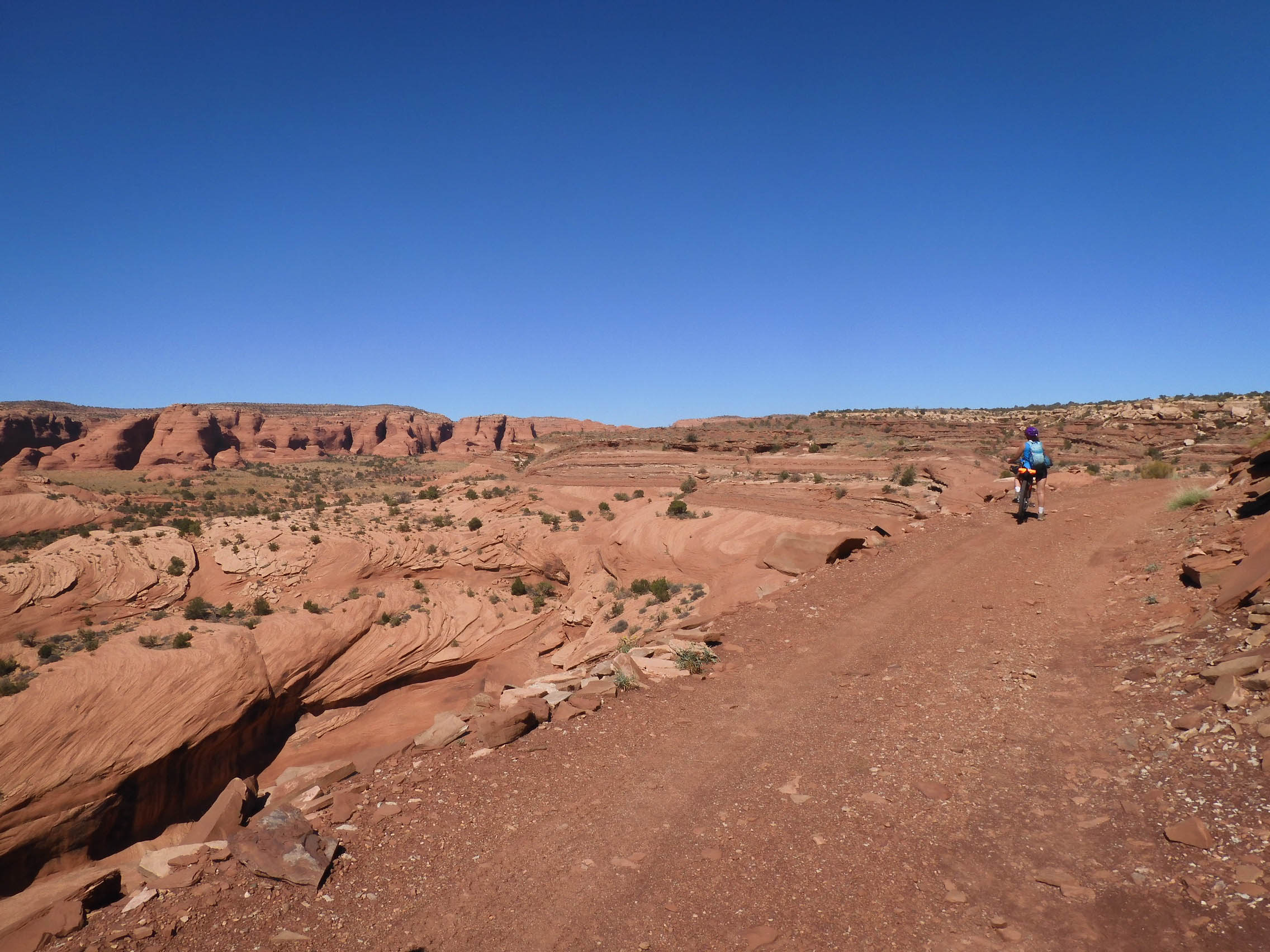 I felt a little bit badly, because I had promised Eric that, after all the hiking we had done in the last week, his feet would get a break for a couple of days while we cycled. And yet, here he was on his feet, pushing his loaded bike up the side of the mesa.