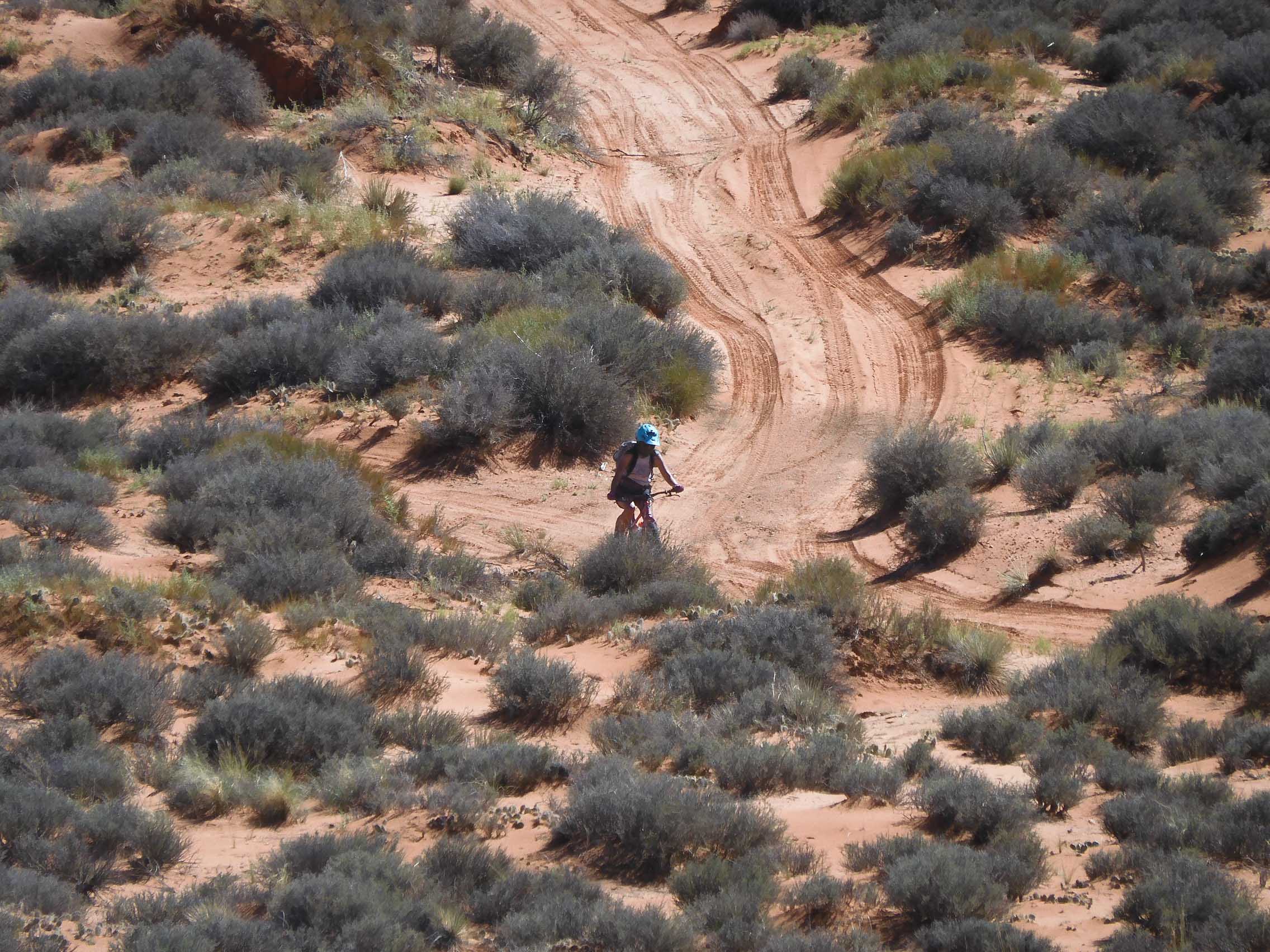 I was very disappointed that, with the rackless bikepacking system, I was unable to mount my camera along with my camping equipment. I had been hoping to do some astrophotography on that new moon night, but I had to leave that equipment in Mather. I took along my pocket Olympus, and found out only after we returned to the hogan that it had an astrophotography mode. I might have been able to carry my compact tripod and taken some great shots after all.