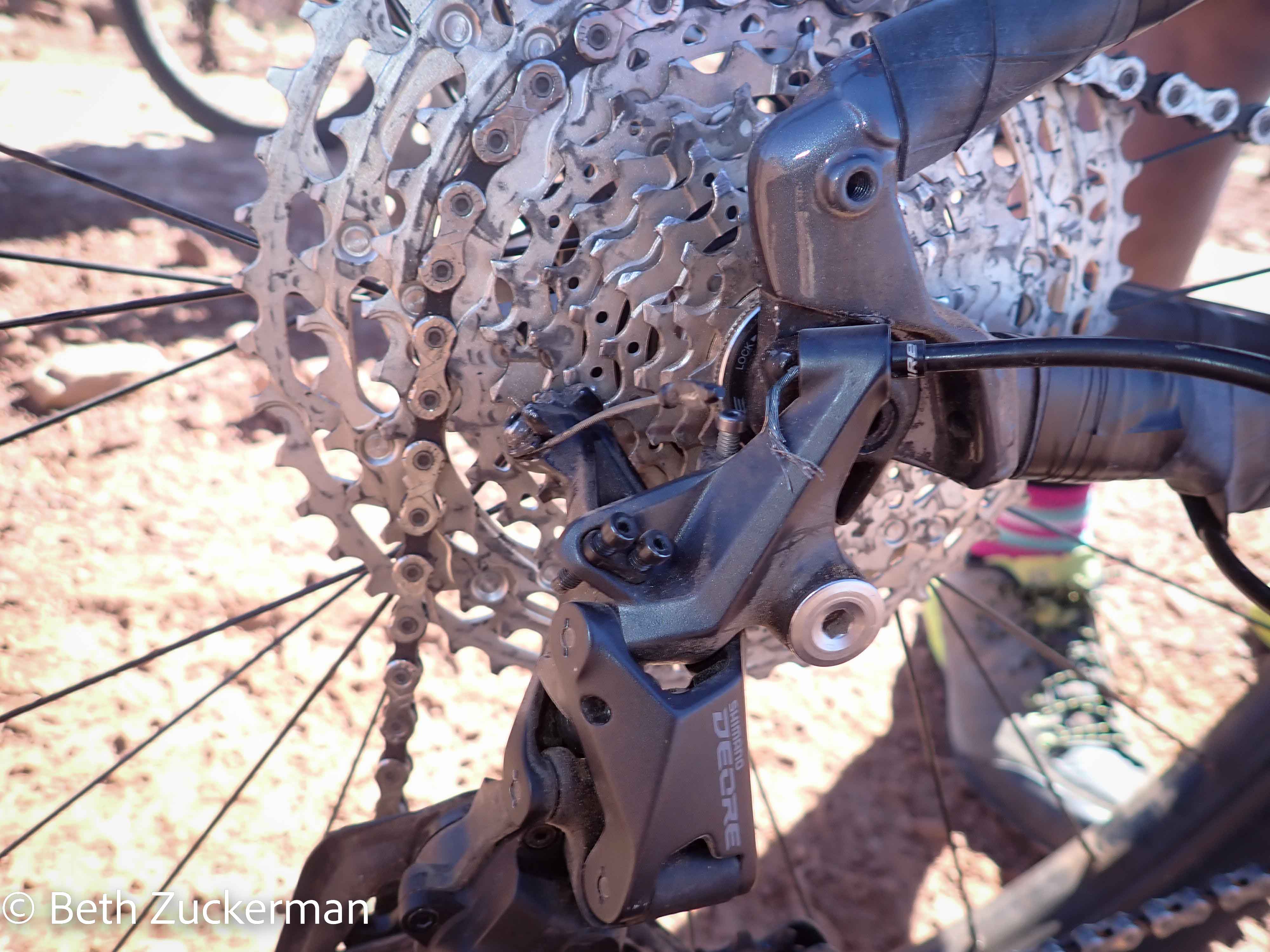 The bikes had rear cassettes with 11(!) sprockets -- 3 more than on our bikes at home -- but only one chainring. Photo by Eric.