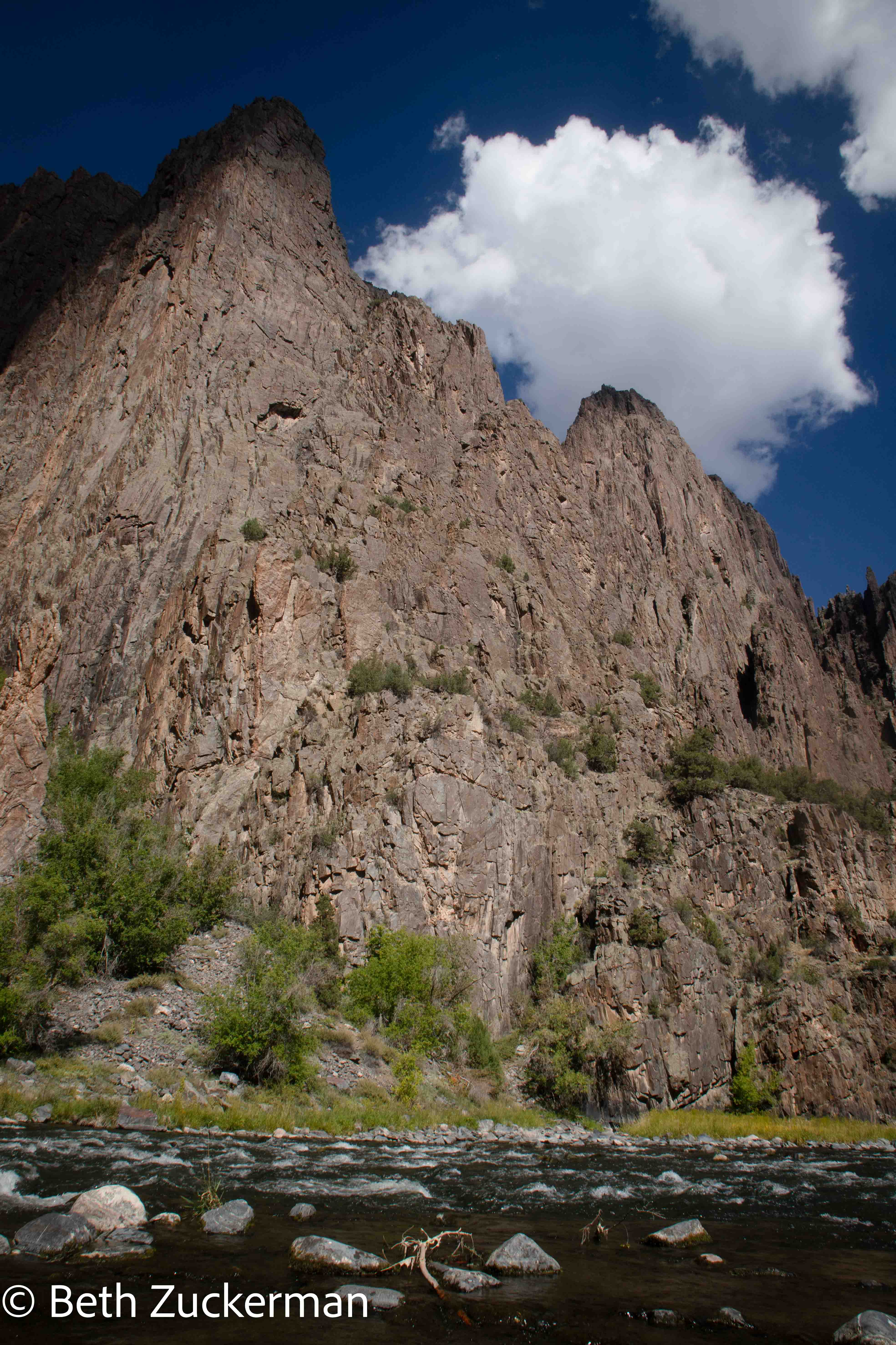 Looking up at the north wall from the Gunnison River.