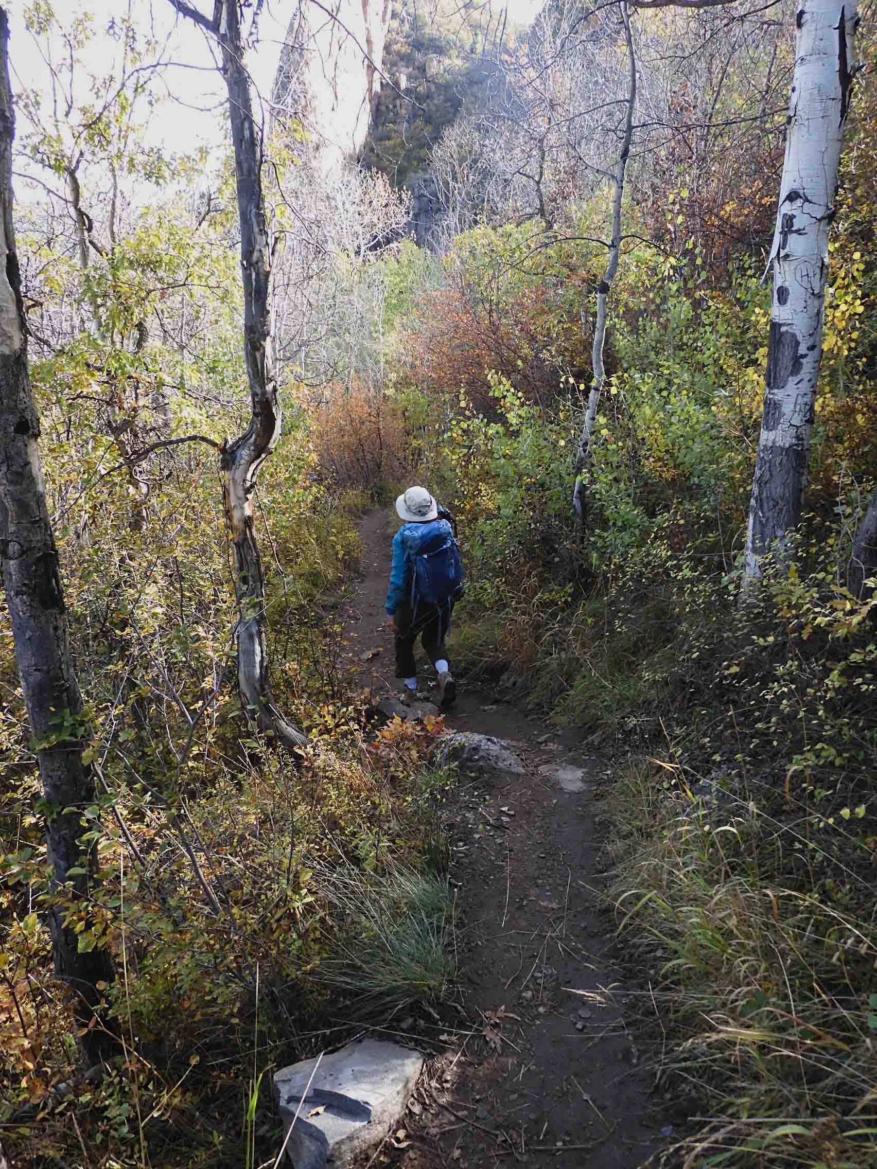We set out on the Oak Flat Trail, which leads to the Gunnison Route, at exactly 9:59. I told myself that, even if the hike took ten hours, we should be beyond the difficult part before full darkness fell.