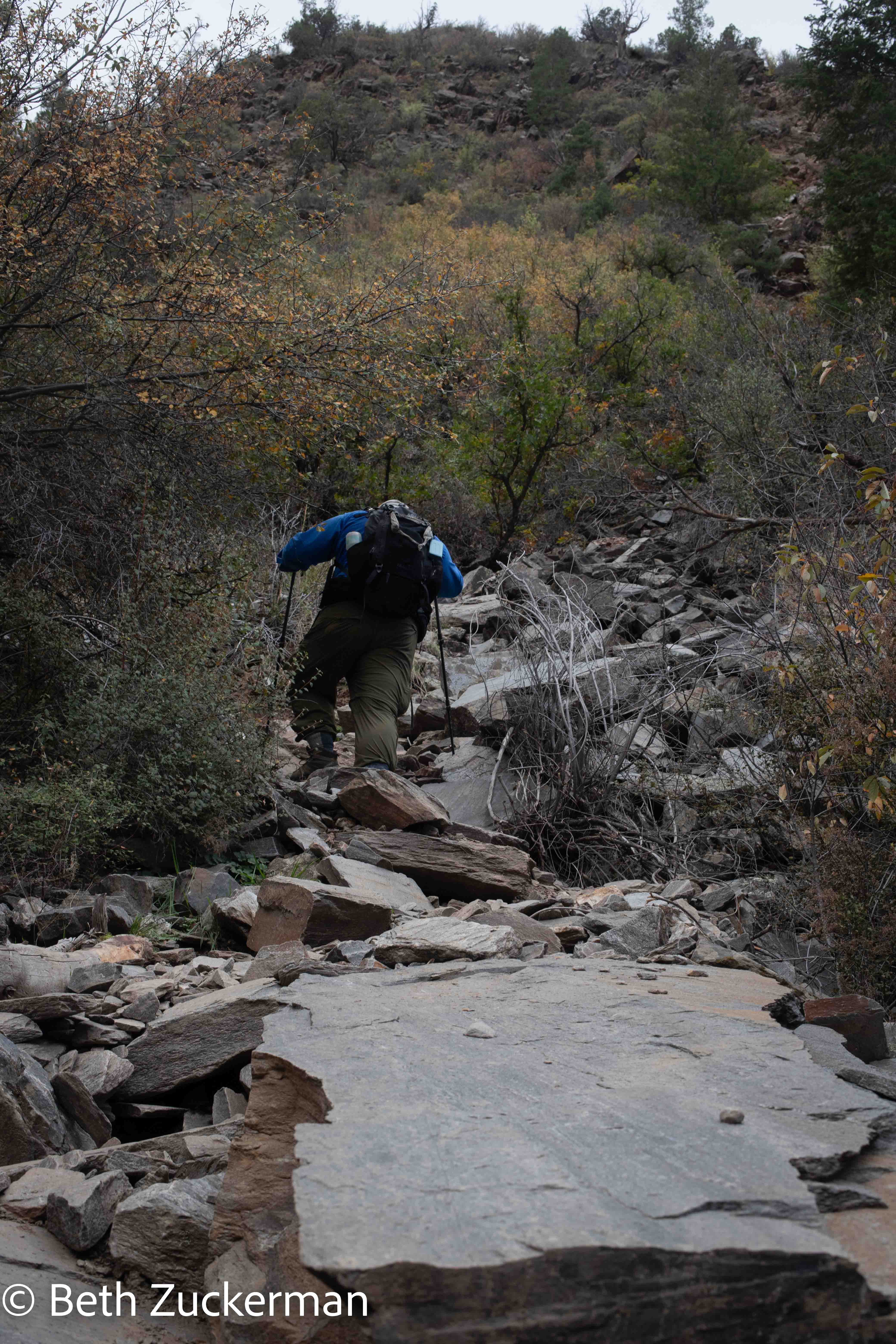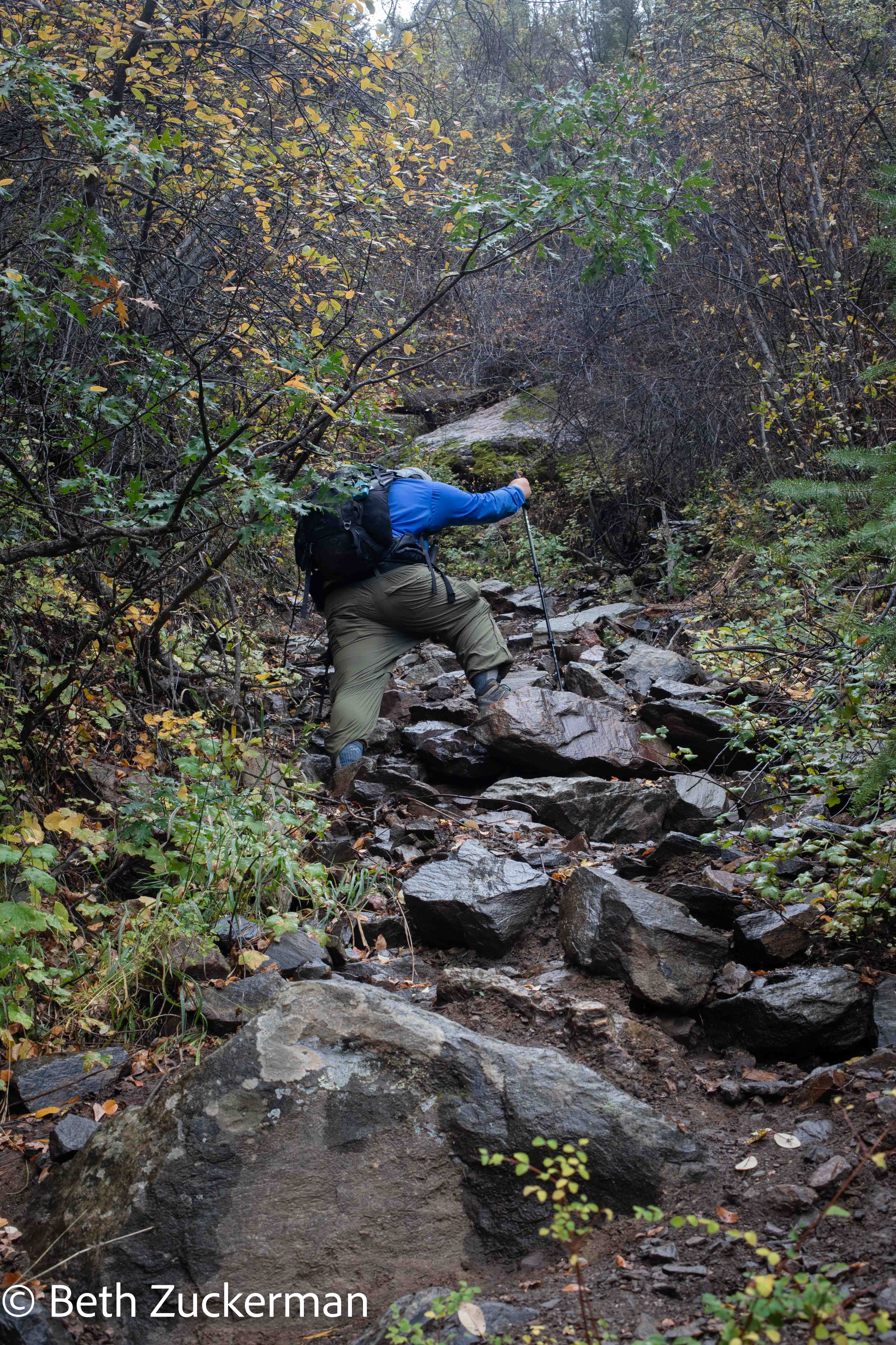 The trail became steeper and more difficult, but the upper part did have some switchbacks. Photo by Eric.