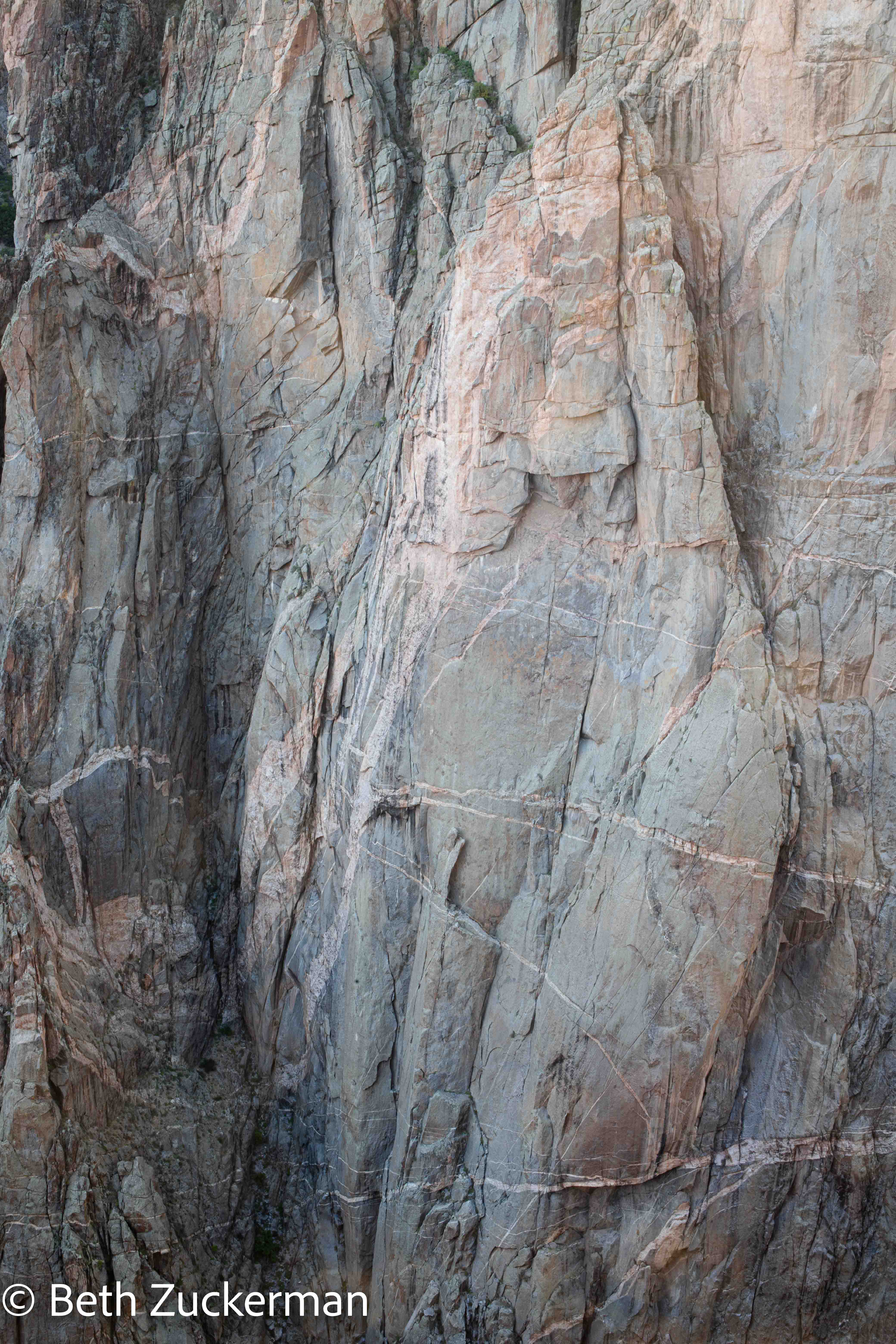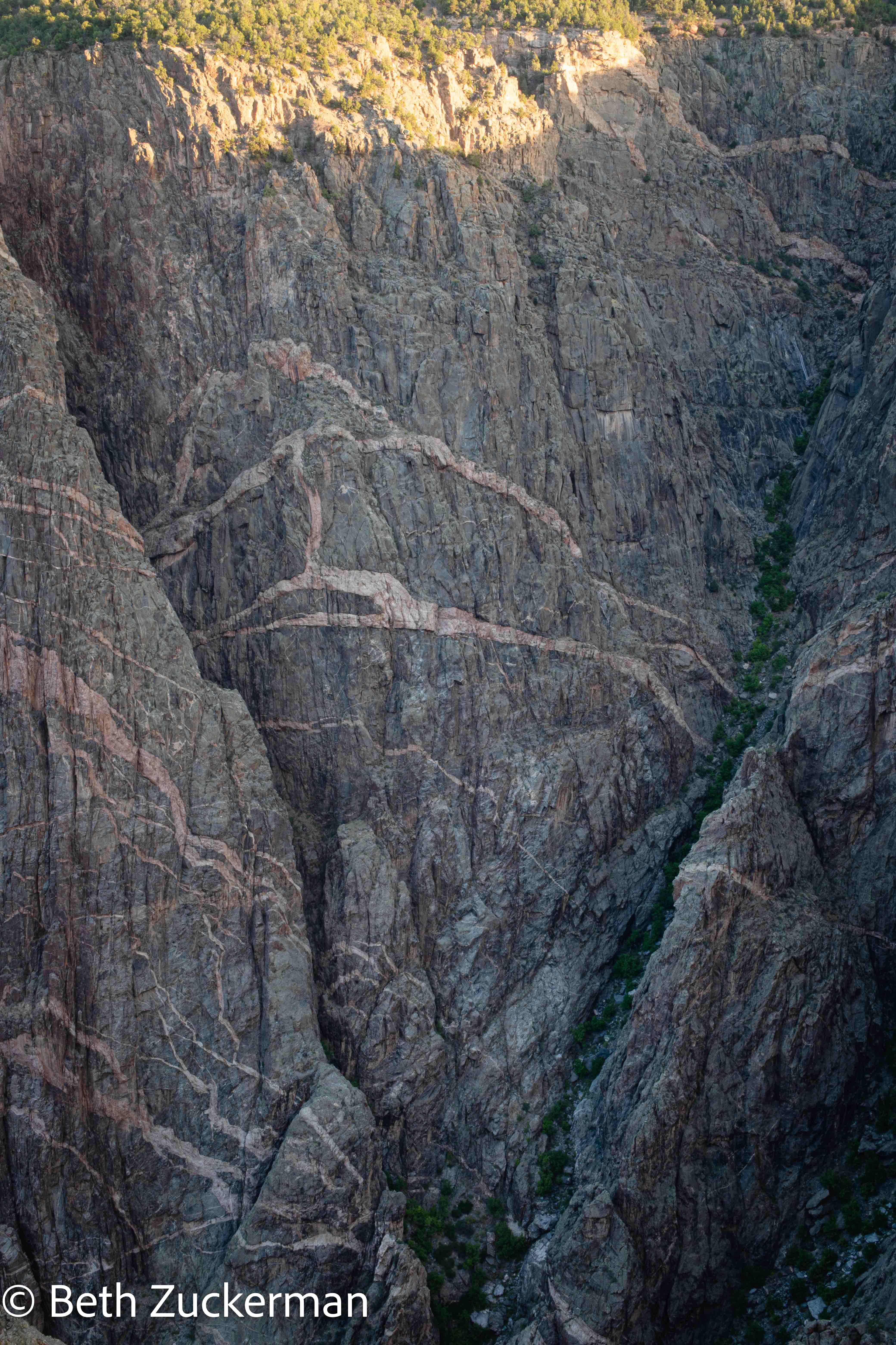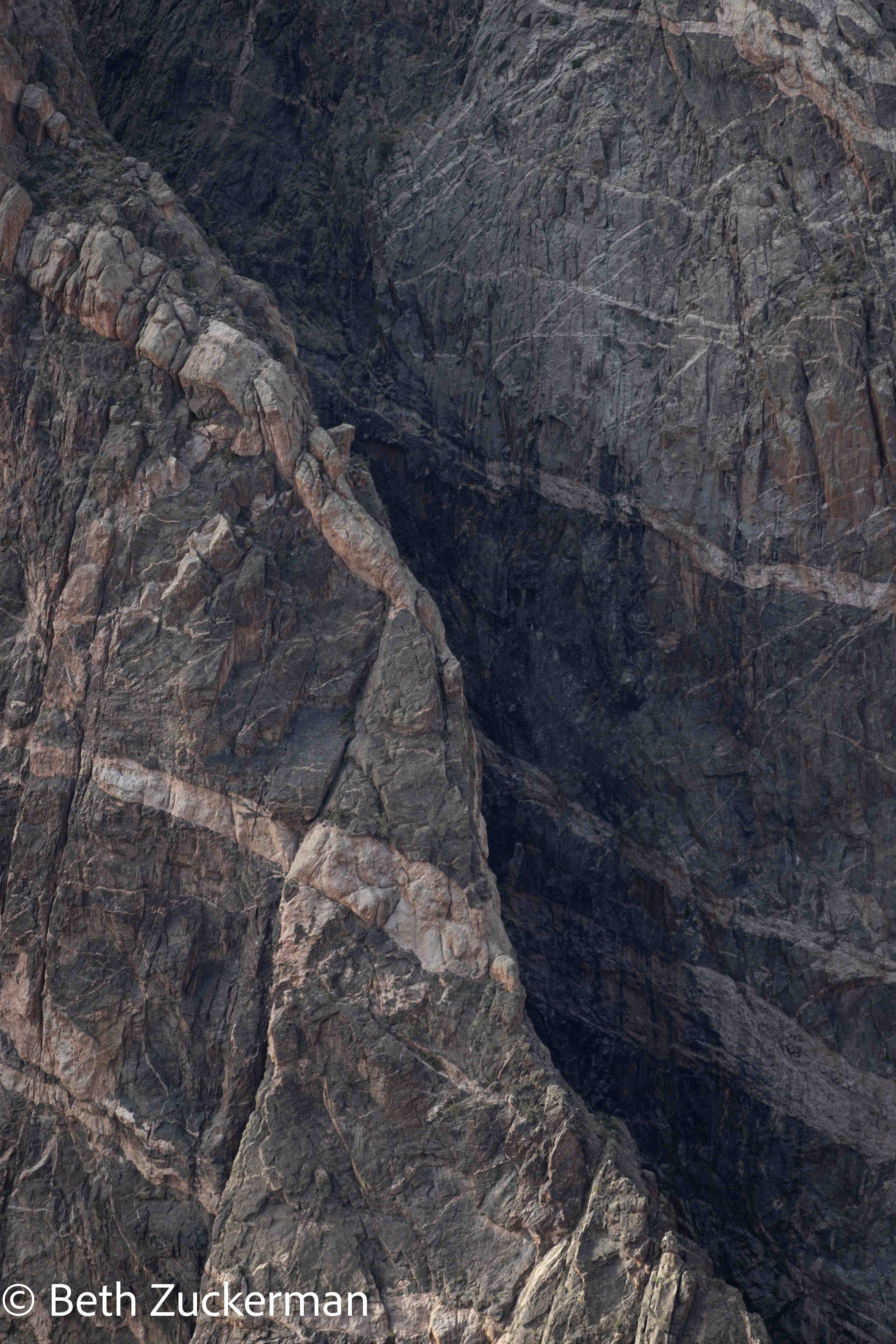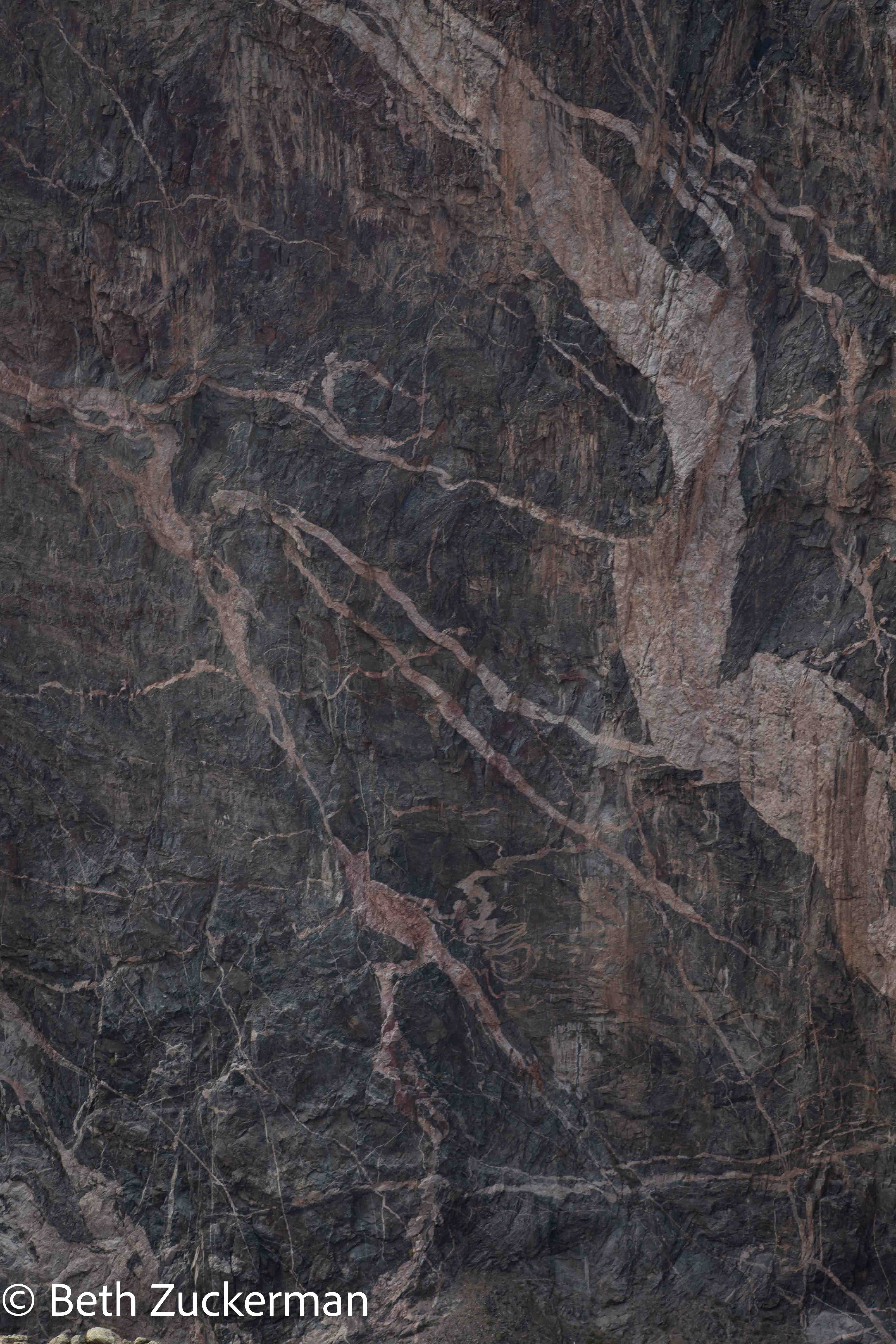 Detail of Painted Wall from Cedar Point. Here you can see the pinkish intrusions of later rock.