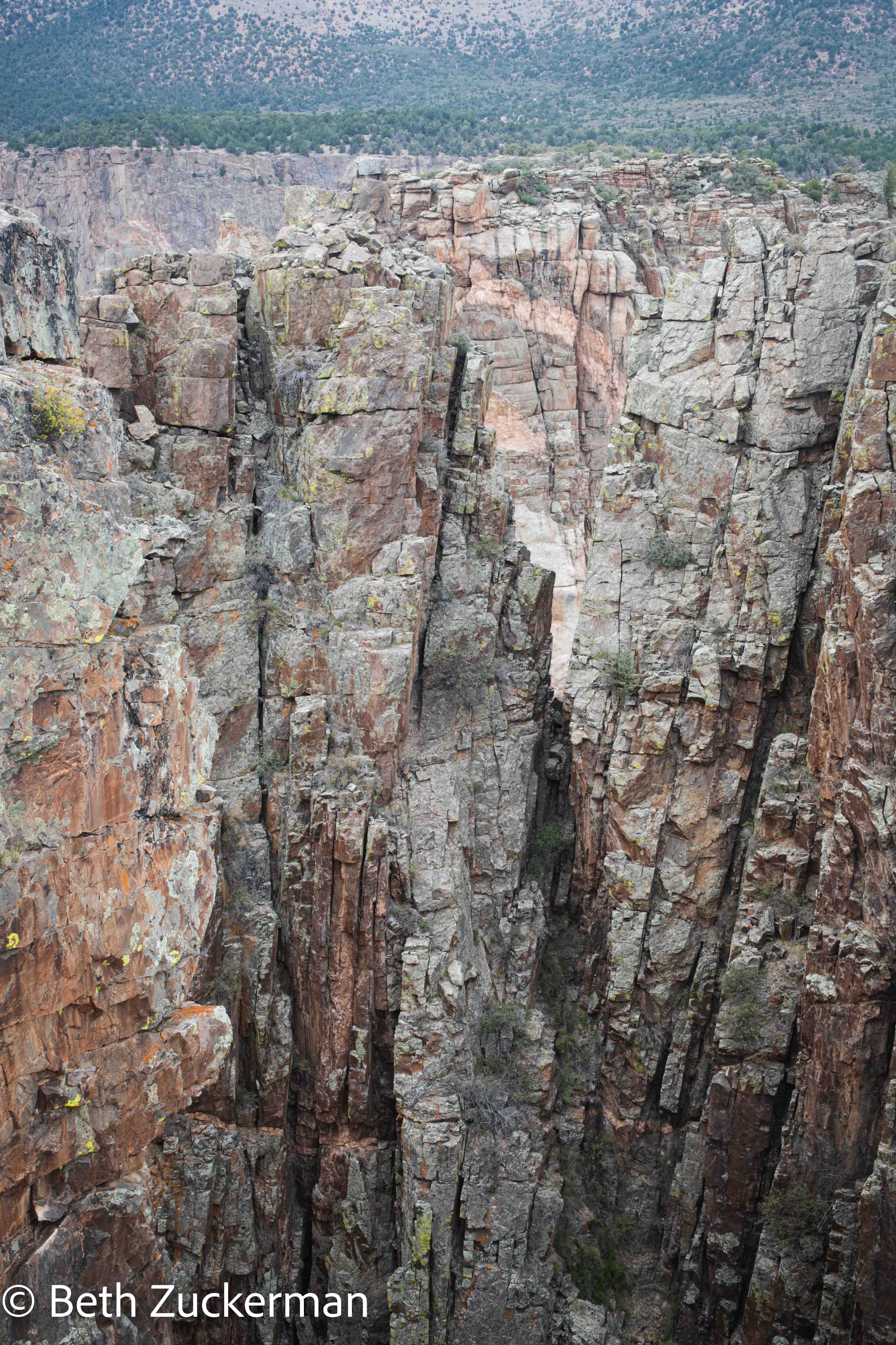 An informational sign at Pulpit Rock told us that the south rim is sloped much less steeply than the north rim, because lesser exposure to the sun creates more freeze-thaw cycles on the south rim, which in turn creates greater erosion.