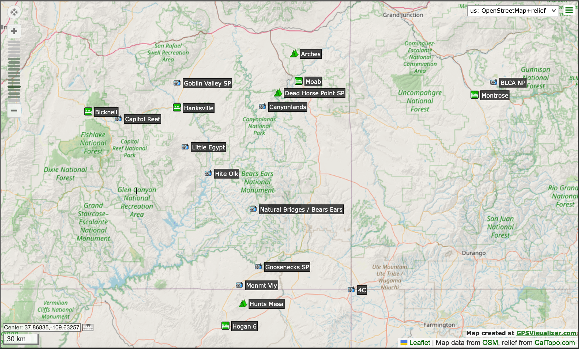 Map of our Colorado Plateau excursion.