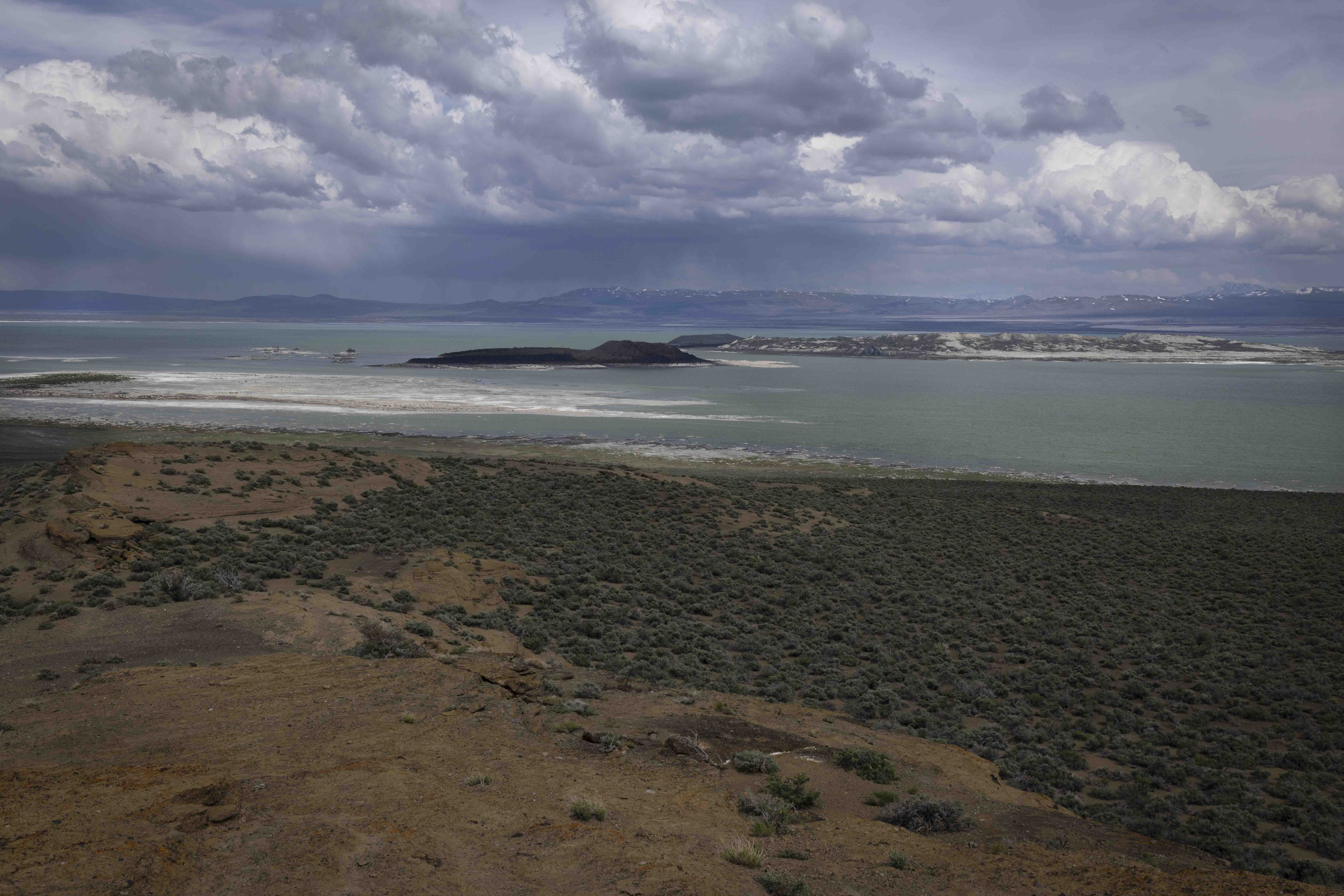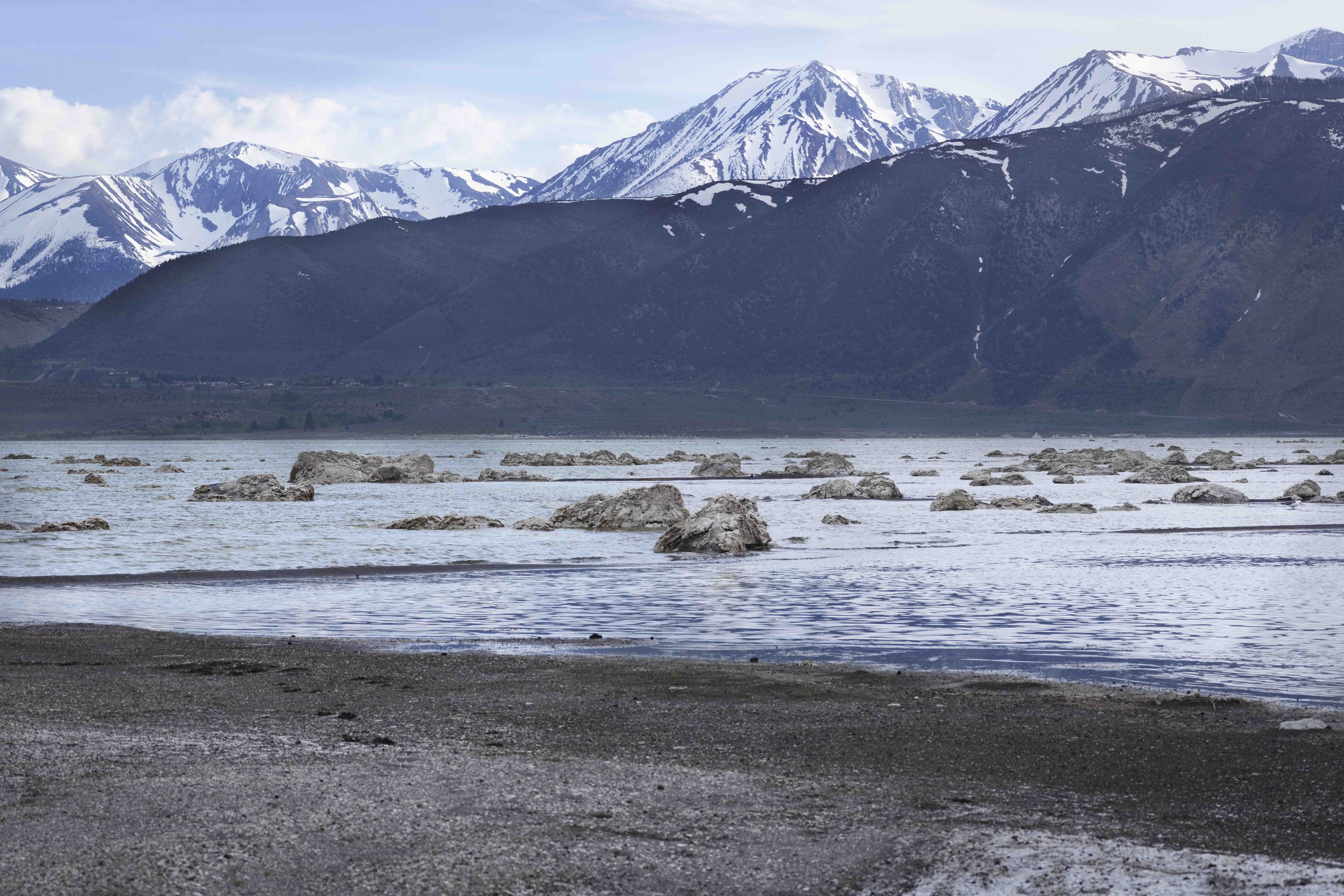Black Point Beach, with Black Point and the Sierra Crest beyond.