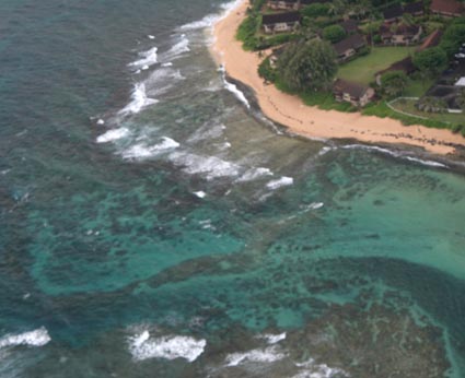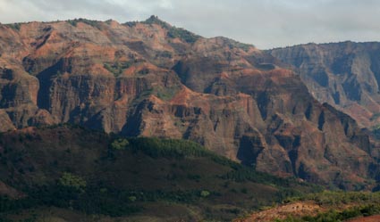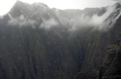 The famous Na Pali cliffs along the north shore were somewhat fogged in.