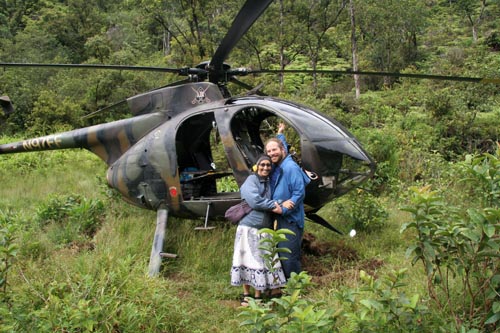 Luke brought us a nice picnic lunch, and then took our picture in front of helicopter.