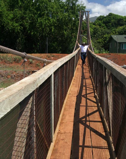 After that breathtaking experience, we found ourselves with a little time before we needed to head up to the north side of the island for our catamaran tour of the Na Pali Cost. We were very close to a swinging bridge with a geocache near it. We both love swinging bridges, so we went to see it and found the cache after a nice walk along the creek.
