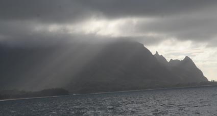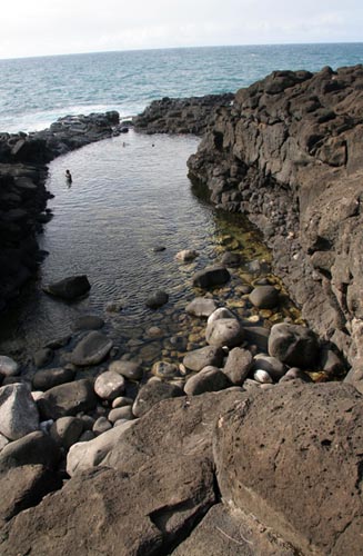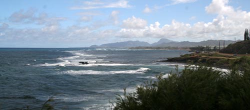From the outer tip of the bath area, you could see parts of Hanalei Bay and the tip of the Na Pali Coast through the fog.