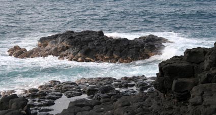 Eventually, we emerged from the foliage to look out at the ocean over a field of black lava rocks.