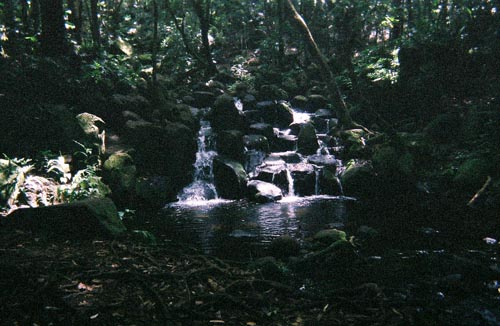 The hike was described to us as sometimes muddy, but it wasn't particularly bad. It was a relatively flat trail, much easier than the Pihea Trail. After about a half an hour, we came to a very small waterfall. We were disappointed, and again left with a "That's it?" feeling.