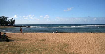 It was only about 9:00 at that time, so we had some time to see some sights we'd wanted to see but hadn't had the chance. Our first stop was Poipu Beach. We have been staying on the south side, but we hadn't yet been to its most major attraction. It was postcard-perfect. We found a geocache.