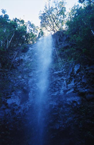 But what was particularly special about these falls was the access. You could swim through the pool and stand right up under the falls and let them rain down on you. Yes, we did try this. Here is a picture Eric took of me through the waterfall.