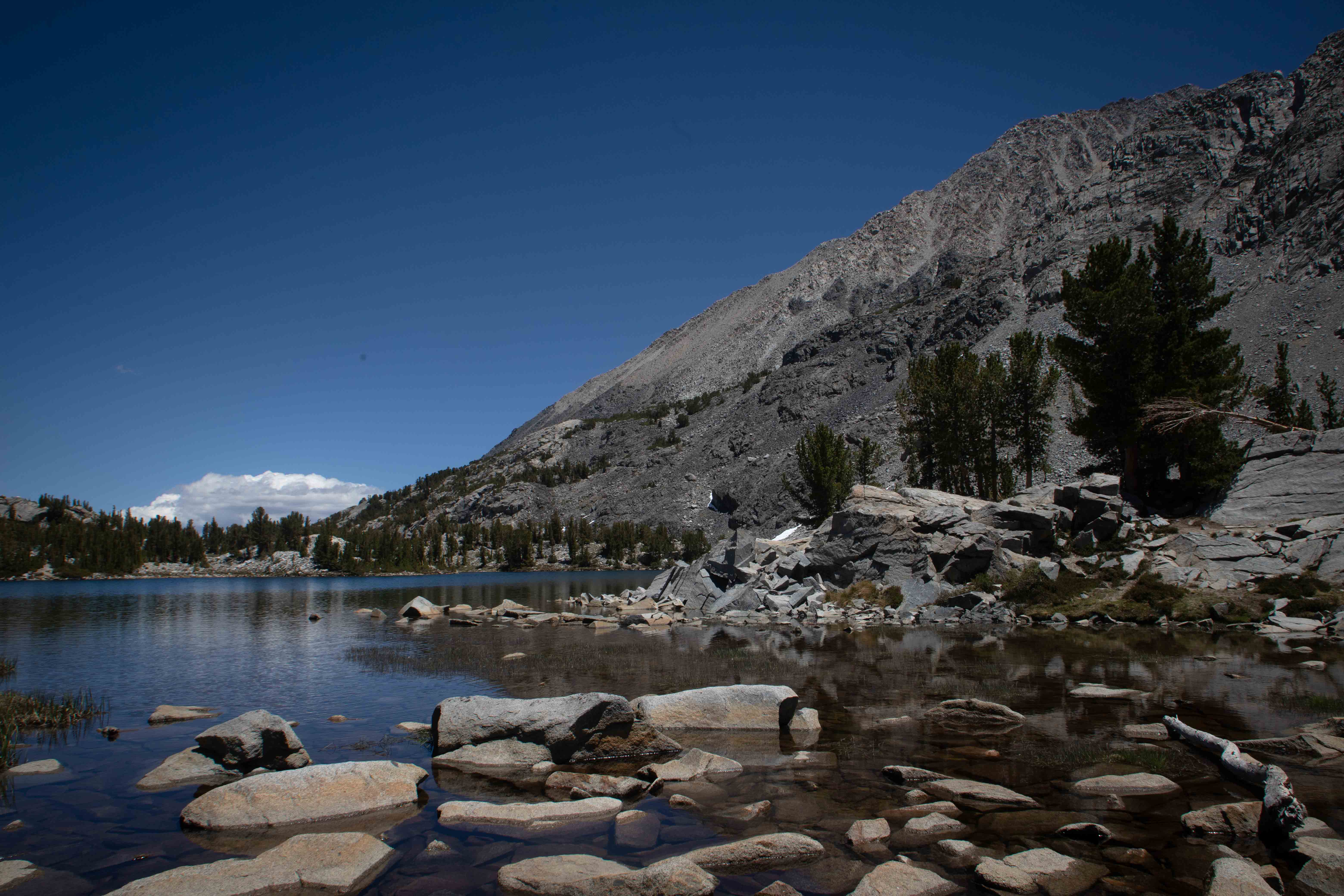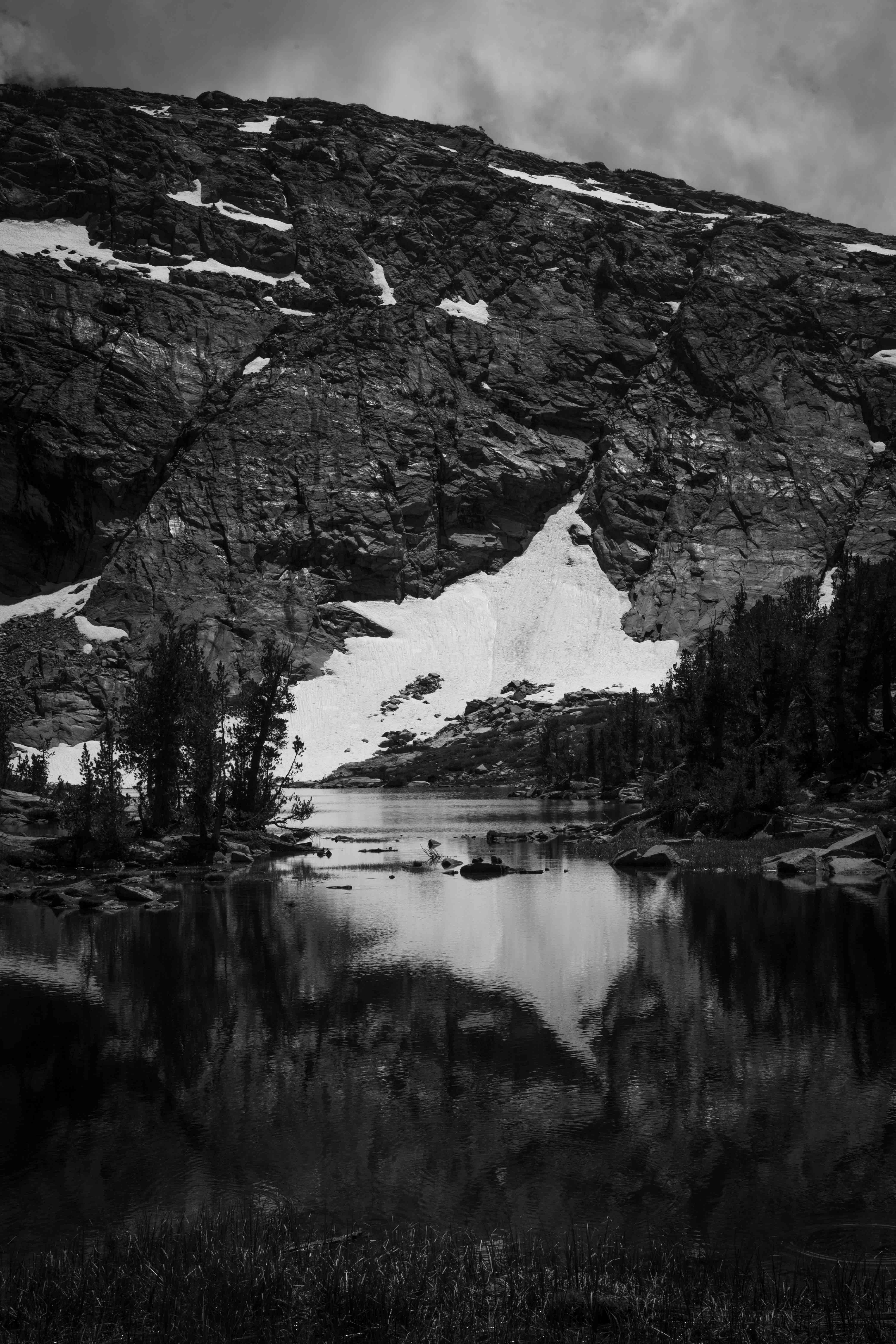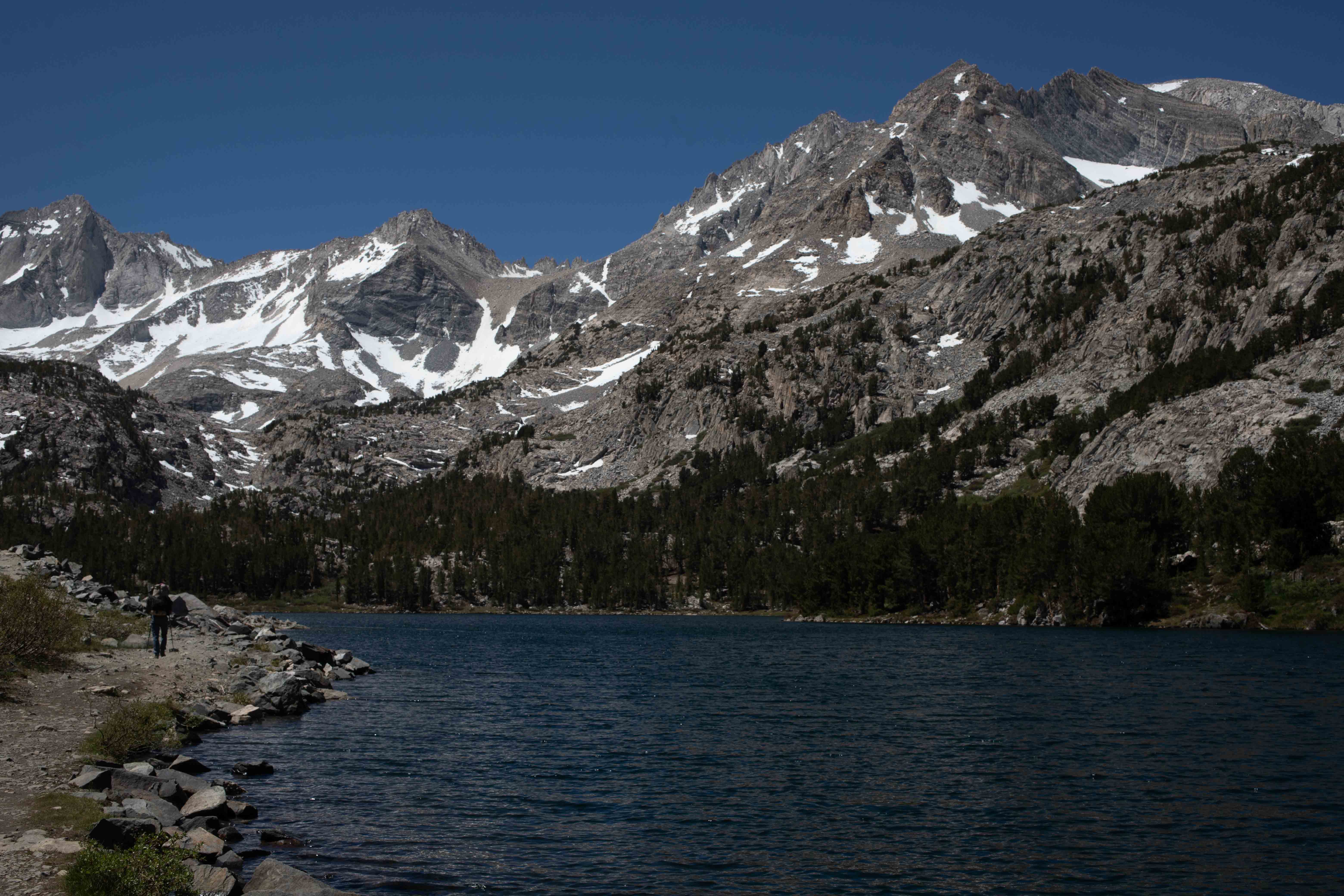 Looking across Gem Lakes. We hiked almost up to the pile of snow in the cirque.