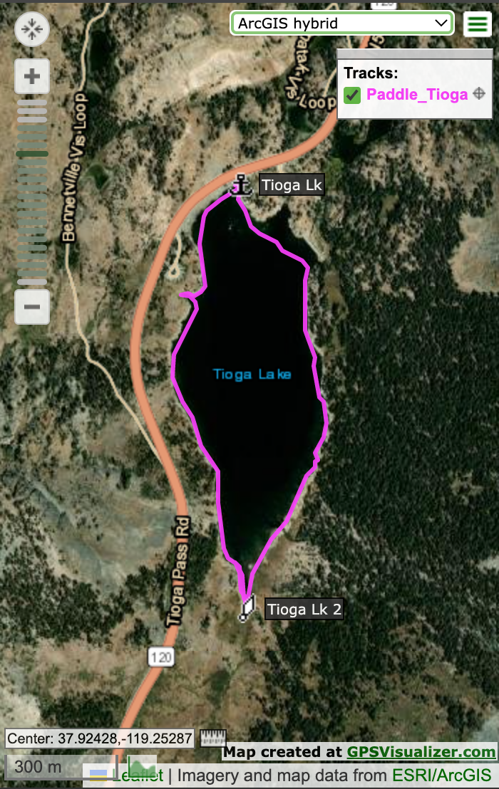 To give our lower bodies a break before the big hike, we brought the Weeble along for a high-elevation paddle. It had been 15 or 20 years since we first had the idea of paddling the Weeble in Tenaya Lake, nestled along CA 120, surrounded by glaciated peaks near Tuolumne Meadows. But Eric noticed that Tenaya Lake was at only 2,484 m/8,150 ft, and we decided Tioga Lake, right at the foot of Mt. Dana in the Tioga Pass, was a better choice. What a beautiful way to acclimate, paddling and floating in the sun, feeling the gentle rocking of the boat as we we admired the awesome beauty of the target mountain looming directly above us! Since we had a coveted Yosemite entrance reservation, we drove out to Olmstead Point to find an earth geocache.