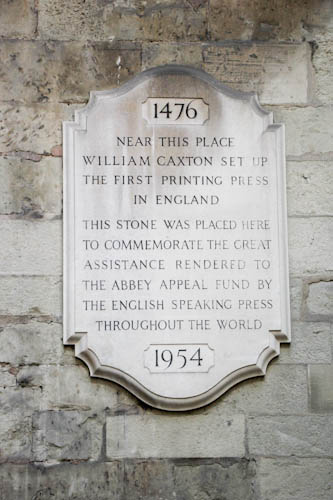 A plaque told us that Caxton's famous printing press had been set up near this place.