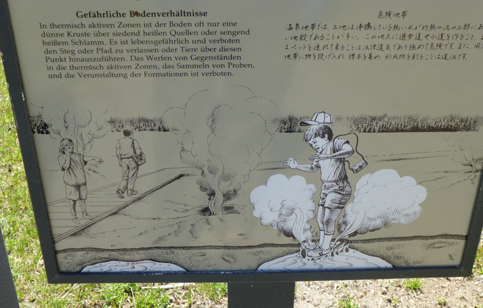 For safety, the trails are all on boardwalks. Eric took a picture of the warning sign, saying, "Goofus steps off of the boardwalk...."