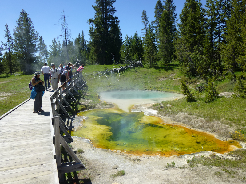 We were staying in Grant Village, which is near a geothermal area called West Thumb on the Yellowstone Lake. While it doesn't have erupting geysers like the Old Faithful area, West Thumb is still beautiful and fascinating.