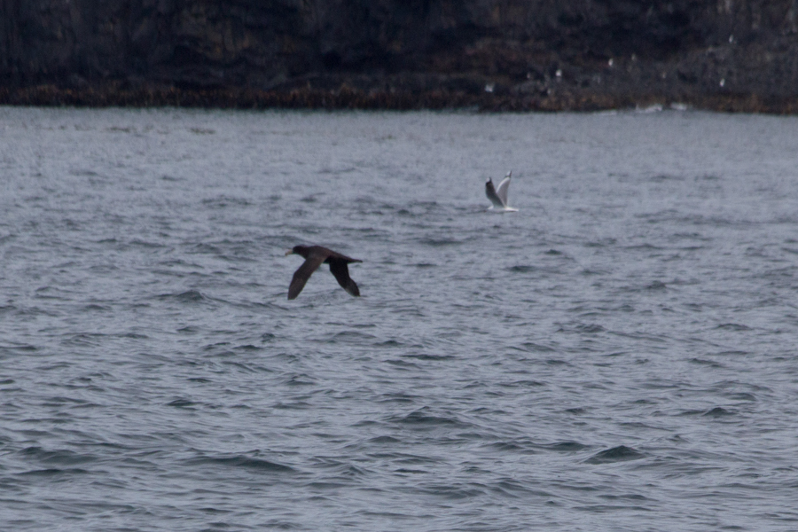 Buddy showed us this native Northern Giant Petrel. The petrel preys on gull chicks, so a Black-backed Gull was chasing it off.